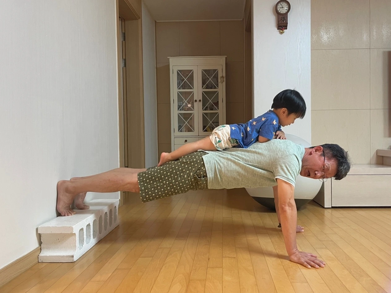 할배 : 엄마가 이렇게 오려면 중간에 뭐가 있어?