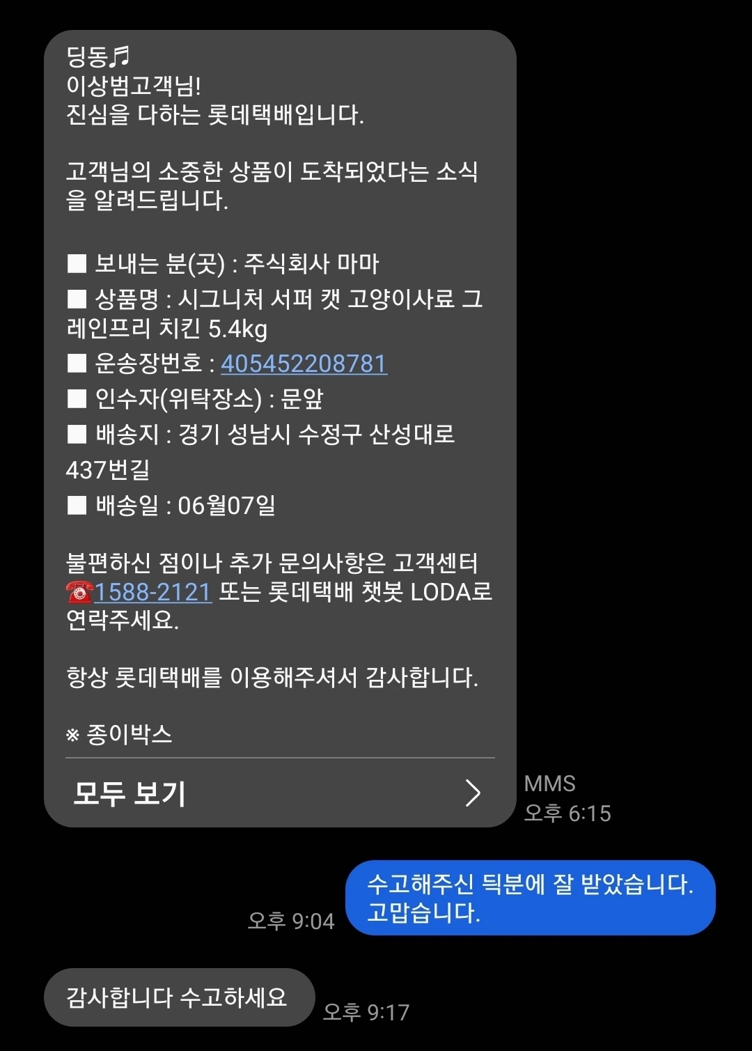 요즘은 택배가 완료되면 미수령에 의한 분쟁 예방을 위해서라도 문자 알림이 온다. 그 문자를 받을 때마다 짧게나마 고마움을 전하는데, 대개는 응답이 없다. 응답을 바라고 한 게 아니니 나 역시 마음을 전한 것으로 만족인데, 어느 날 한 택배기사로 부터 응답이 왔다.