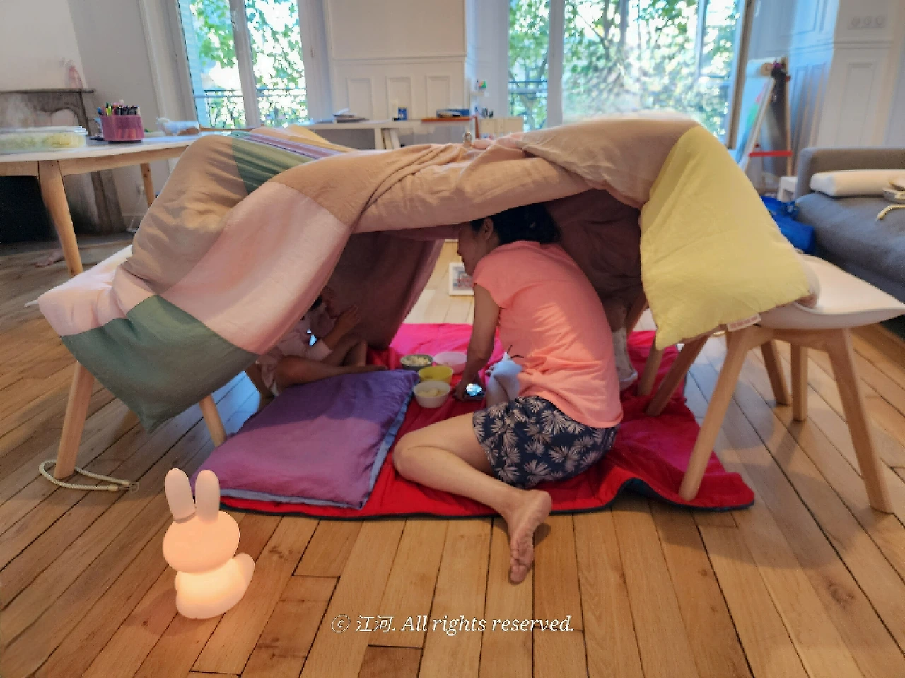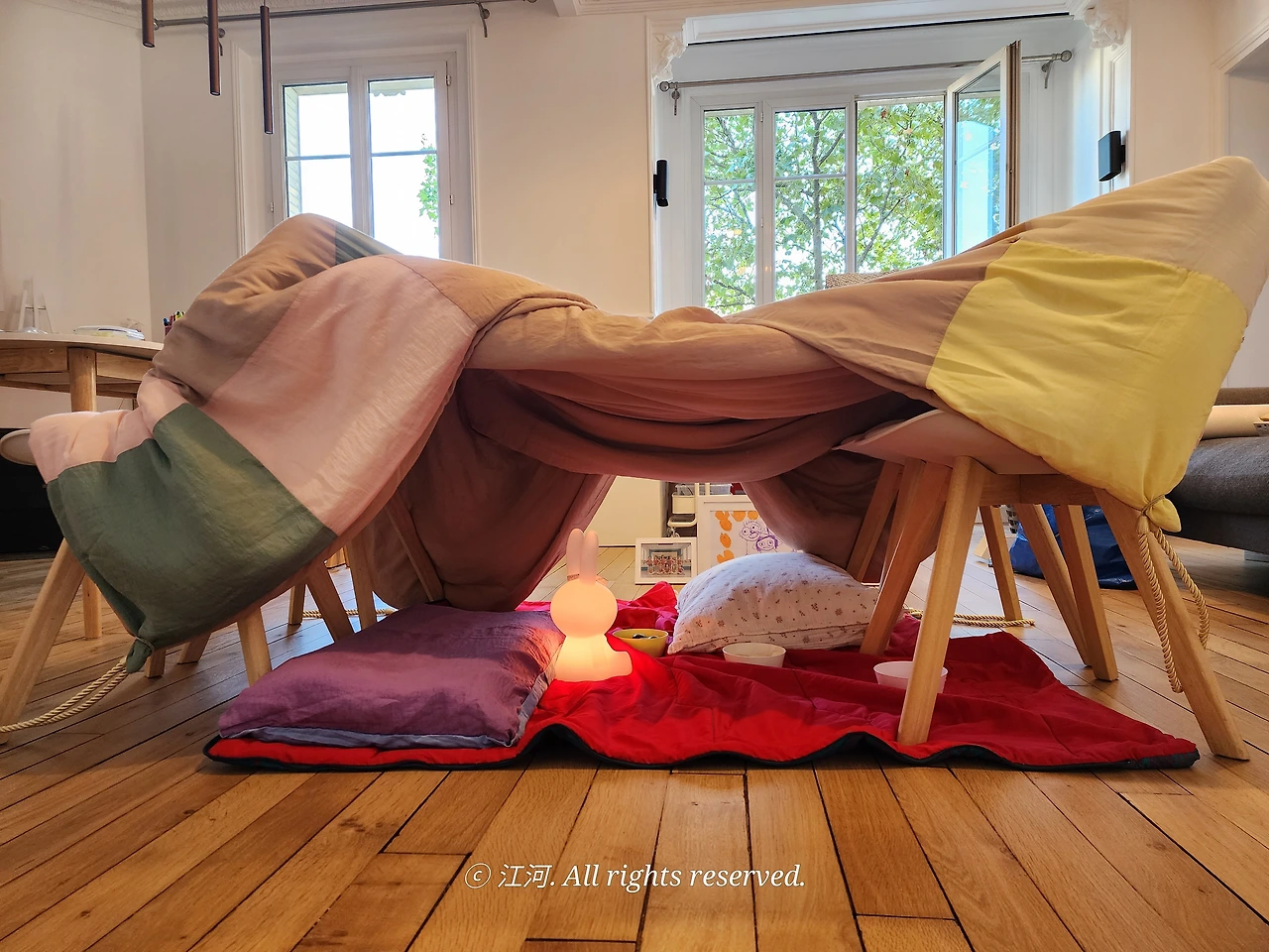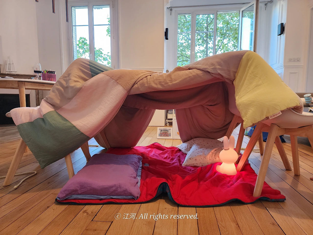 뭐든 이용하여 손녀가 원하는 텐트를 만들어 보자.