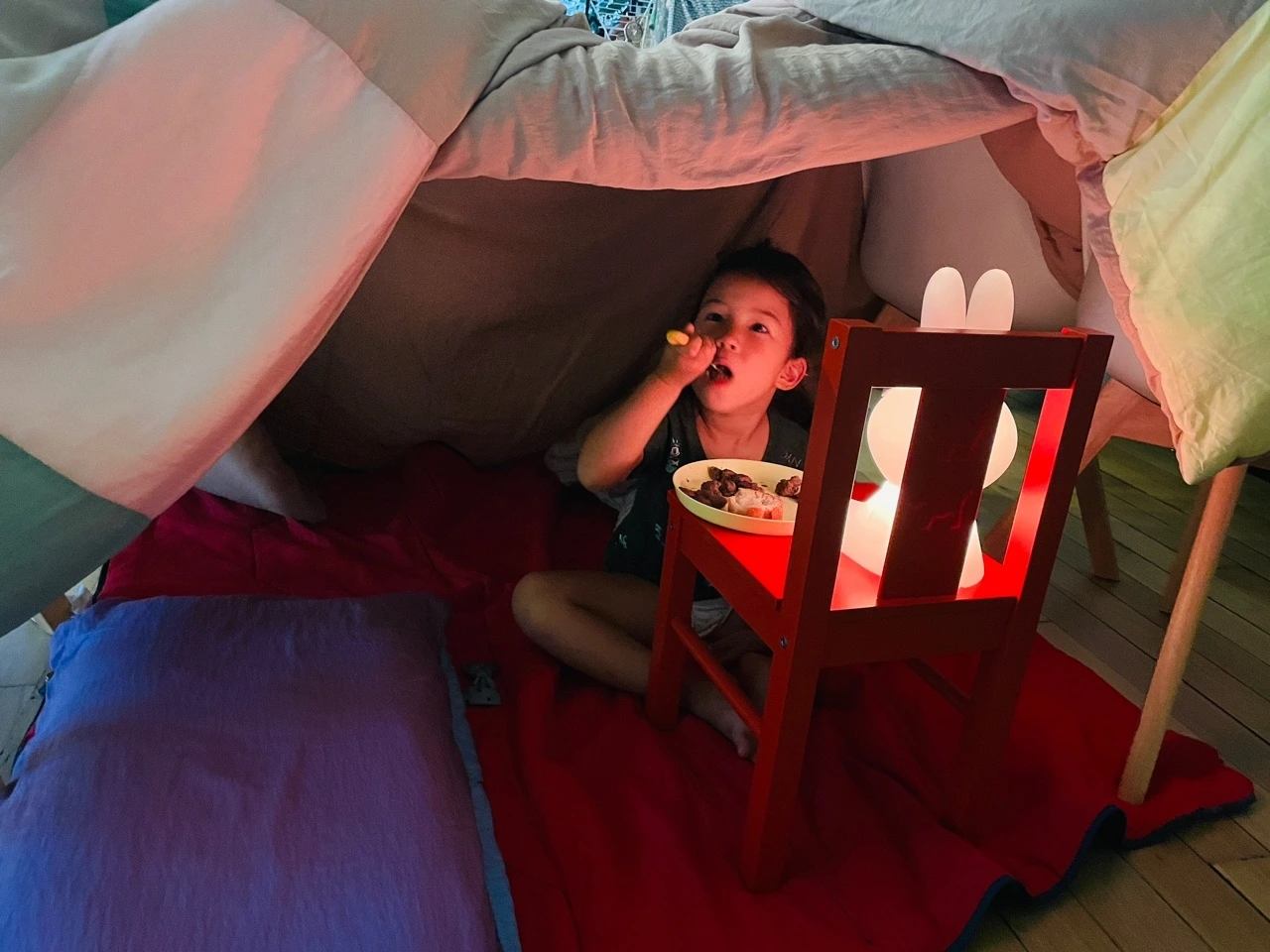 갑자기 텐트를 만들어 달라고 조르는 딸에 대한 엄마의 답변.