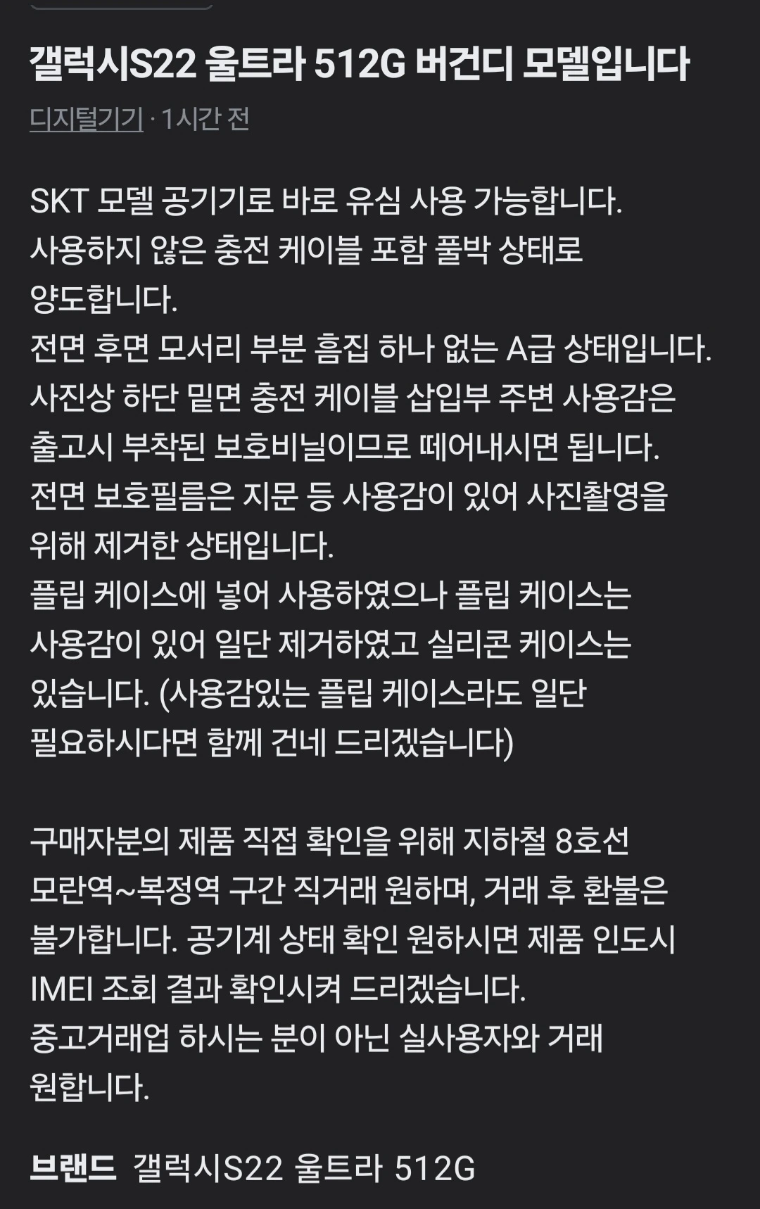 당근마켓에 올린지 두 시간만에 연락이 와 속전속결로 양도.