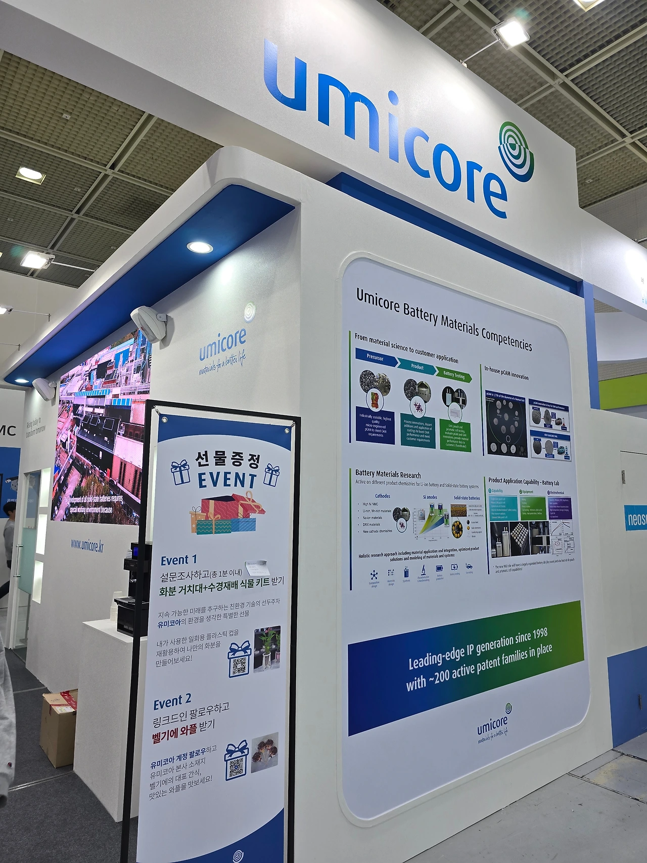 말로만 듣던 (배터리 원가의 40%를 차지하는) 양극재 세계점유율 1위 기업인 벨기에 유미코아 부스를 볼 줄이야..
