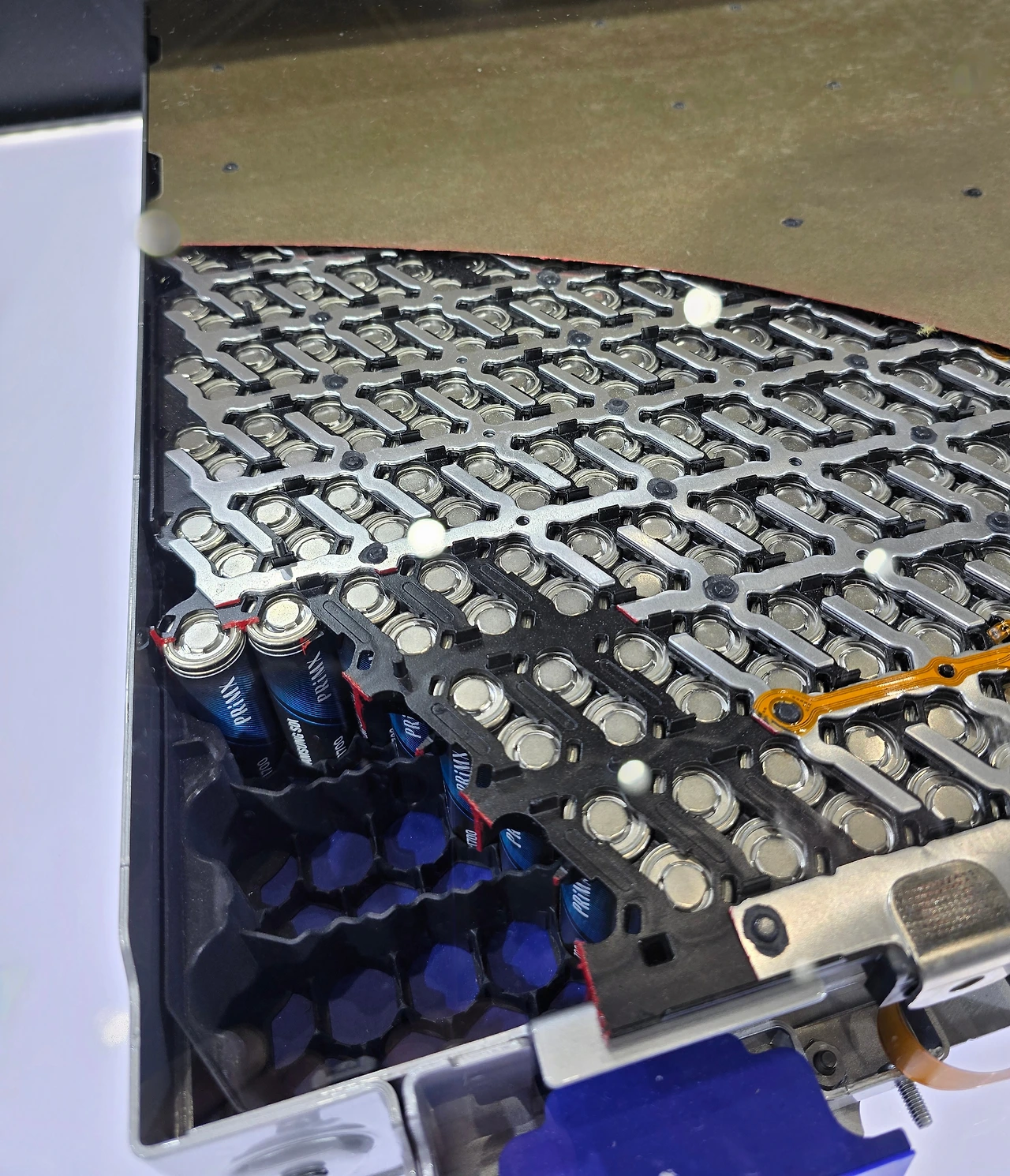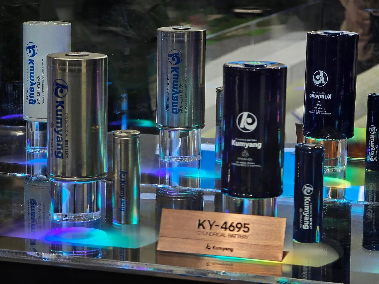 금양이 세계 최초로 개발하여 내년 양산 계획인 4695 원통형 배터리. 우측 하단은 현재 원통형 배터리 중 가장 많이 활용되는 21700 배터리.