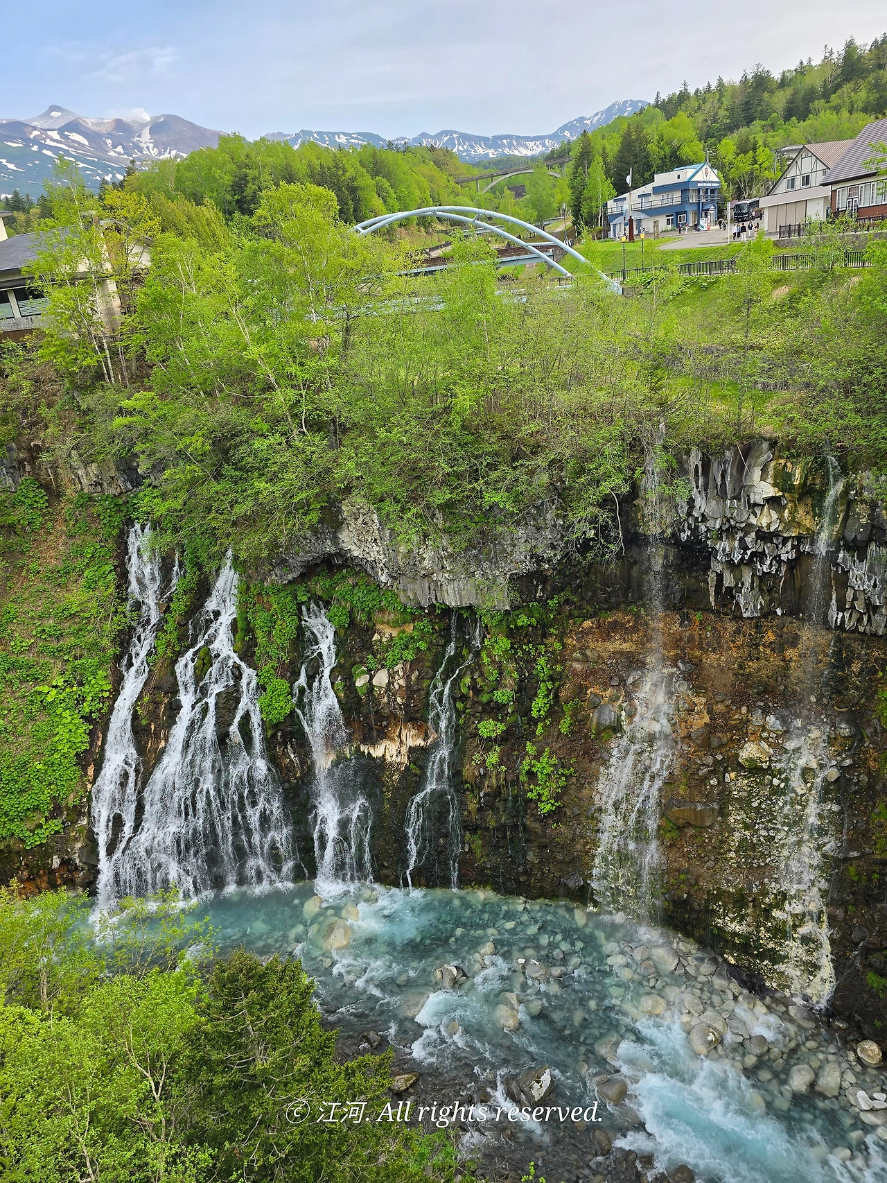 [흰수염폭포]는 아오이이케에서 20분 거리의 시로가네 온천마을에 있다.