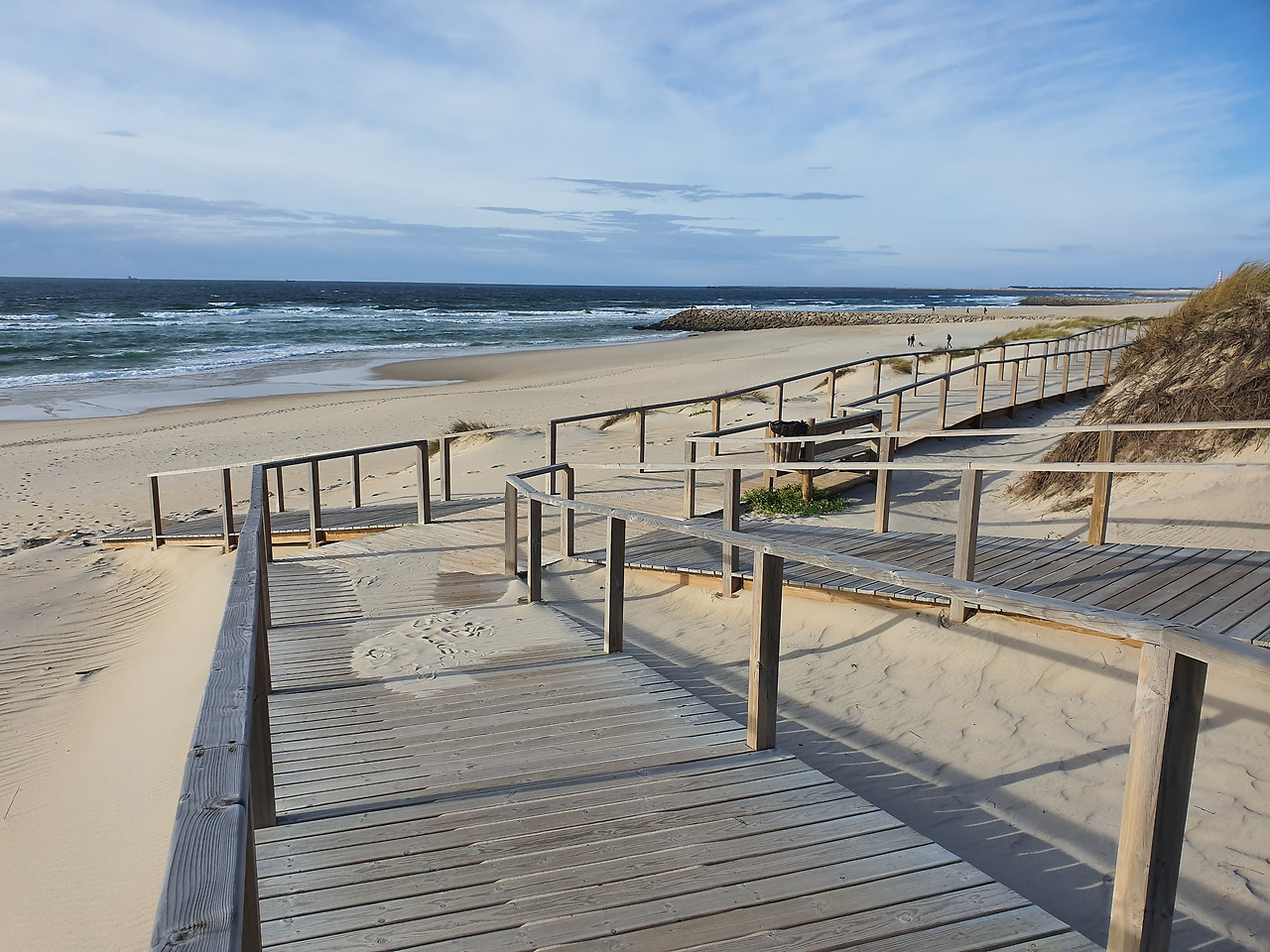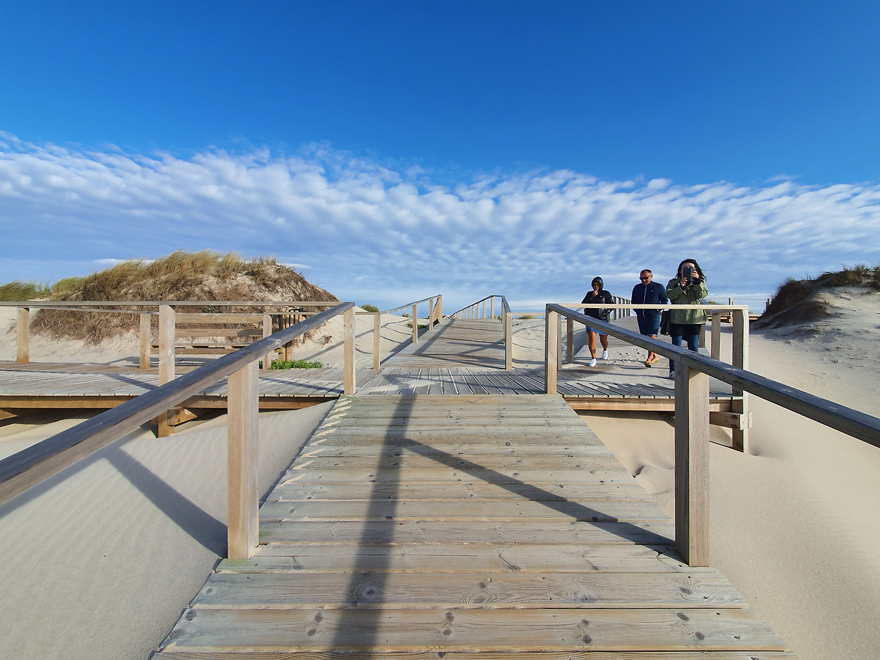 바닷바람이 실어 나른 모래언덕 위 데크 너머 대서양이 살포시 고개를 든다.