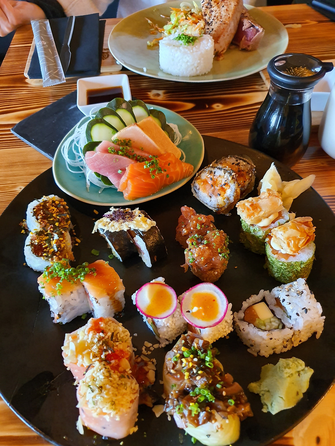 얼마 만에 먹는 초밥인가.. 참치 스테이크도 훌륭하다. 저 창 너머가 주 좌석이다. 일식당 임에도 리셉션과 홀, 주방 어디에도 동양인이 안 보인다.