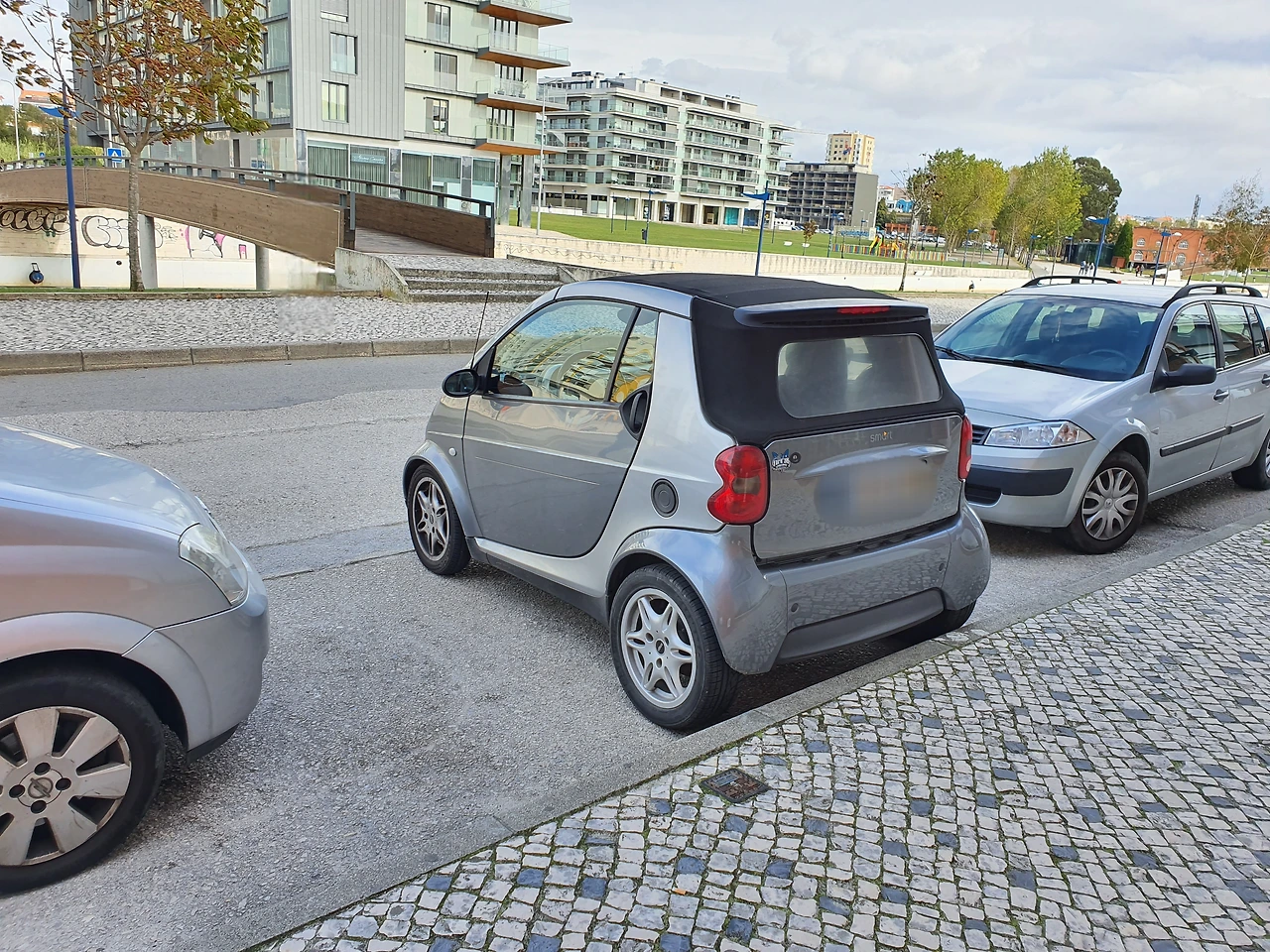 최대 장점이 주차라는 걸 여실히 입증한 smart. 앞뒤 전장이 일반 차폭과 비슷하다.