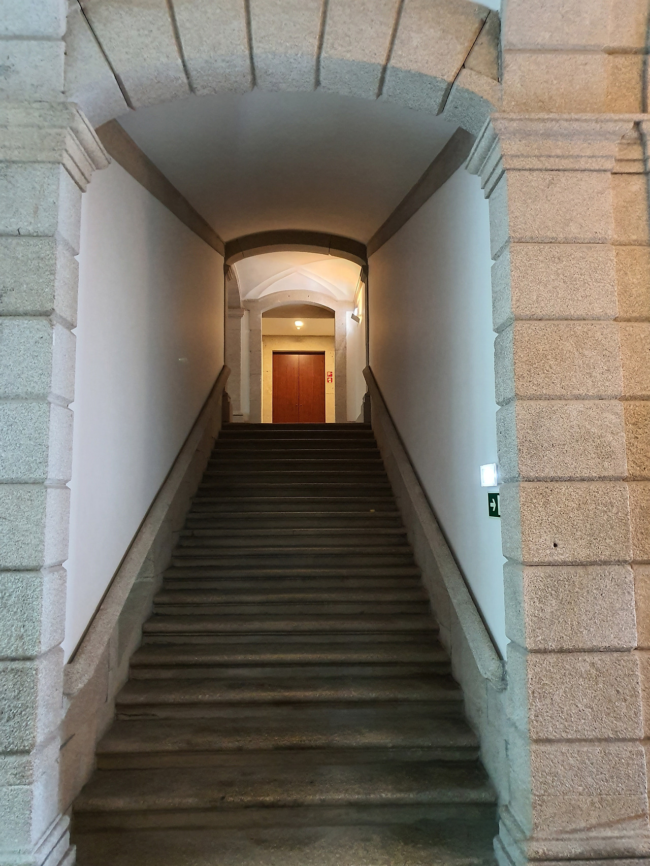 로비 1층에서 2층으로 오르는 계단. 모든 게 massive한 느낌의 돌이다.