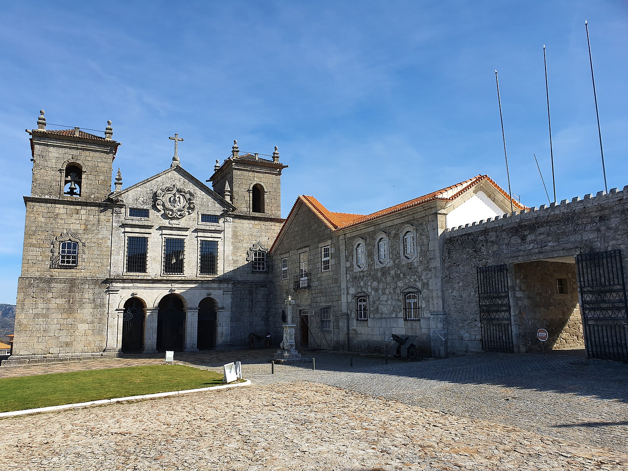Lamego의 이색적 성당을 보고 Amarante로 향한 지 얼마 안돼 성당처럼 보이는 건물 앞에 대포들이 진열되어 있다.