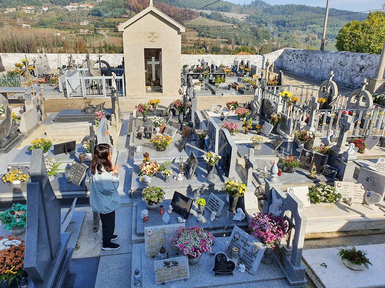 작은 면적에 오밀조밀 많은 묘소가 들어찼다. 마을 사람들의 정서가 반영된 듯 묘소 위 장식이 상당히 아기자기하다. 그리고, 헌화된 꽃들이 모두 싱싱하다.