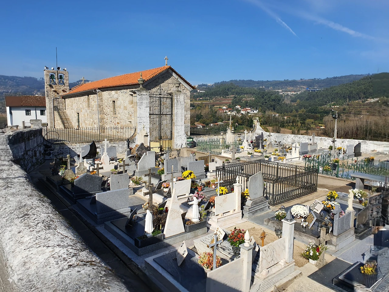 유럽에서 교회나 성당 옆에 마을묘지가 있는 것은 흔히 볼 수 있는 모습이지만, 이 작은 마을은 묘지 밀도가 높다.