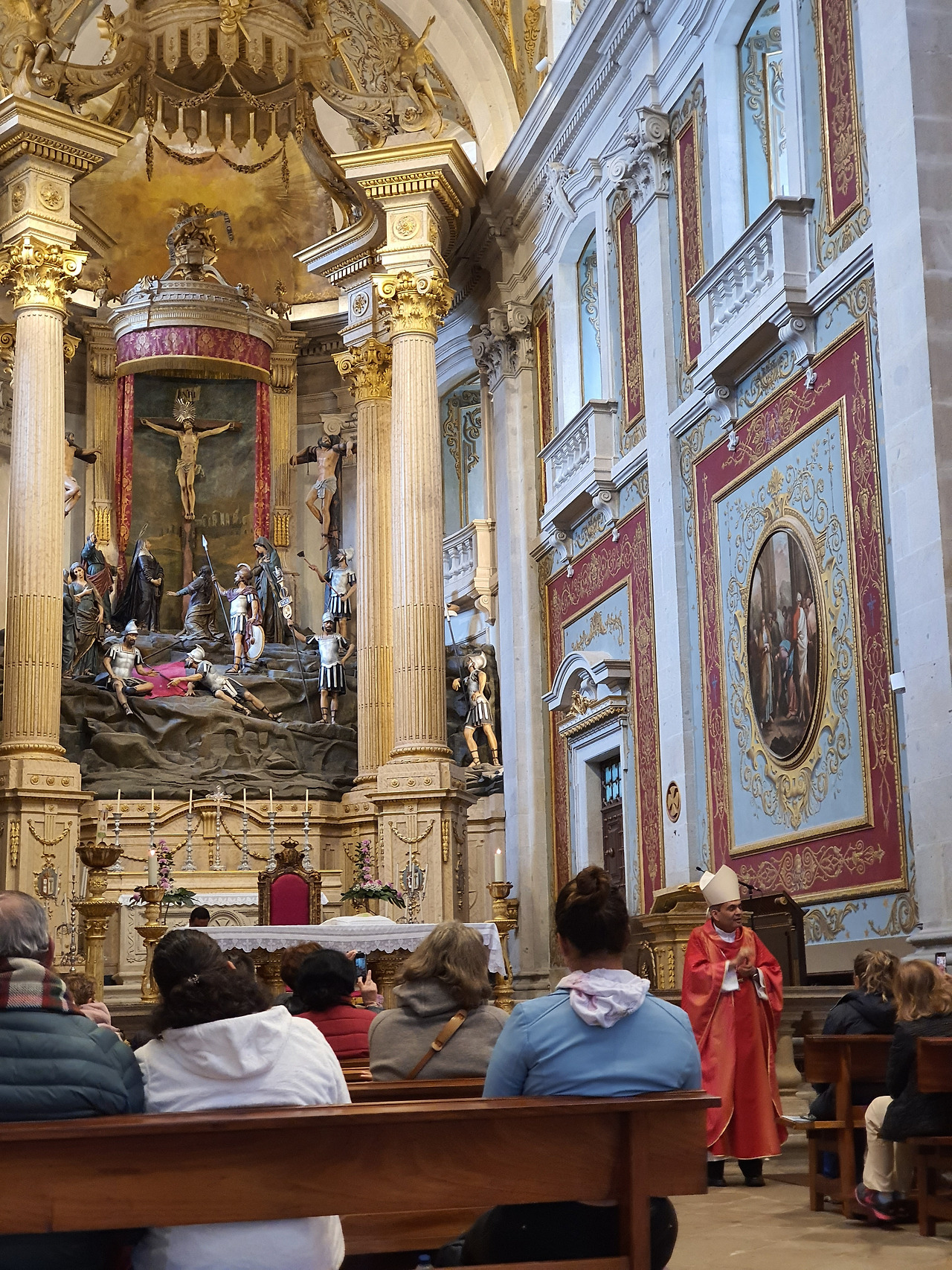 십자가나 성모상이 일반적인 다른 유럽 성당과 달리 포르투갈 성당의 제단 후면은 화려한 조형물이 많은데, 이곳은 좀더 특이하다.