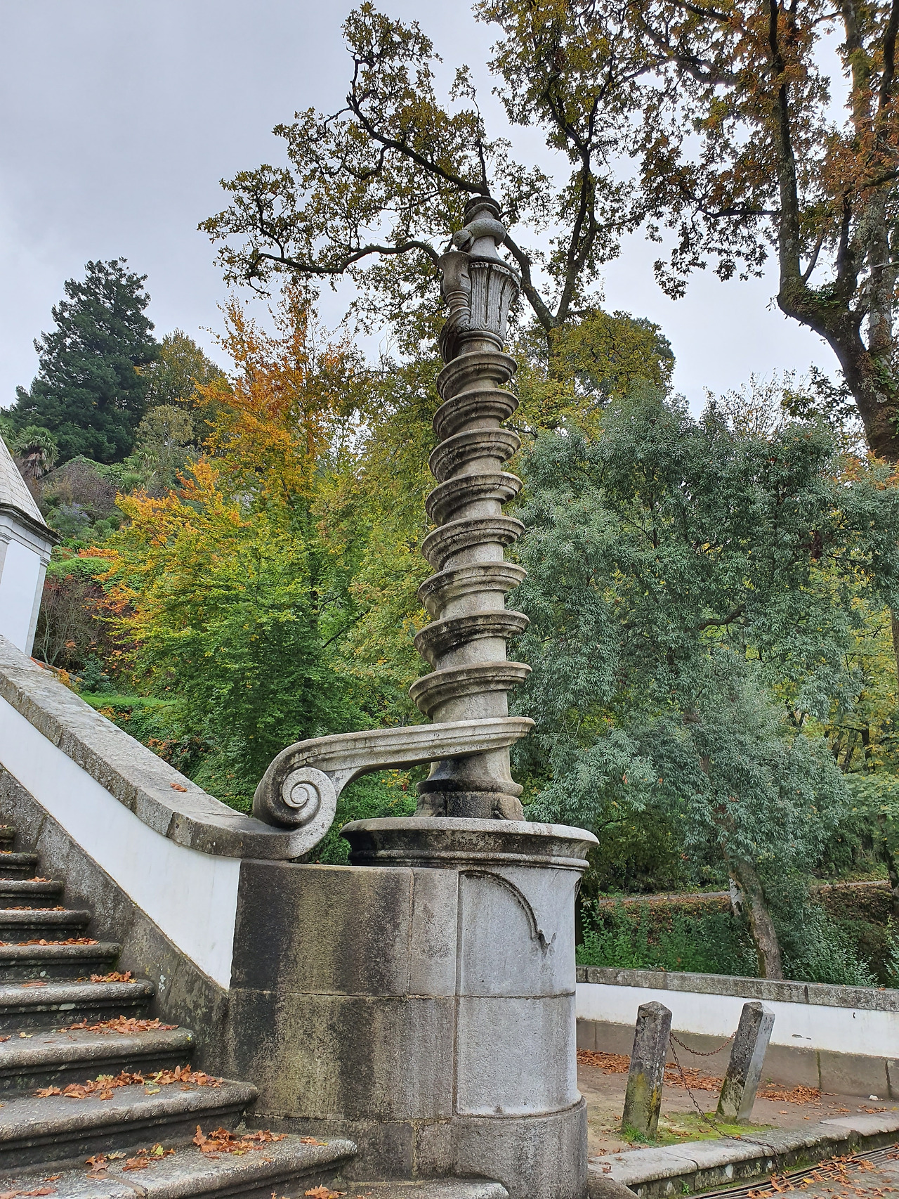 포르투갈의 상징 중 하나인 푸른 색 유화 아줄레주가 있었던 라메구의 각 단계 별 벽면과 달리 이곳의 각 계단 사이의 중간 벽면은 아무 색이 없다. 대신 각기 다른 이미지의 분수가 있는데, 물이 나오는 분수꼭지 형태가 다 다르다.