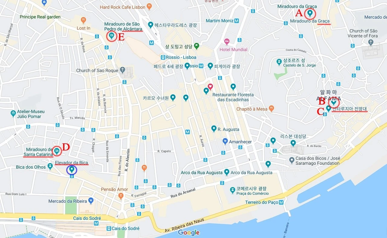 전망대 전시장이라 해도 될 만큼 리스본에는 곳곳에 시내를 둘러싼 전망대가 참 많다.