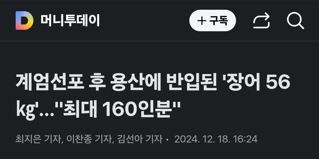 계엄 성공 후 자축연을 하려 했는지 모르겠으나 뜬금없는 장어 배송도 어이없지만, 50kg나 60kg도 아니고, 그렇다고 55kg도 아닌 굳이 56kg는 또 뭔가 궁금했는데, 김용남 전 의원의 한마디가 귀에 와닿는다.