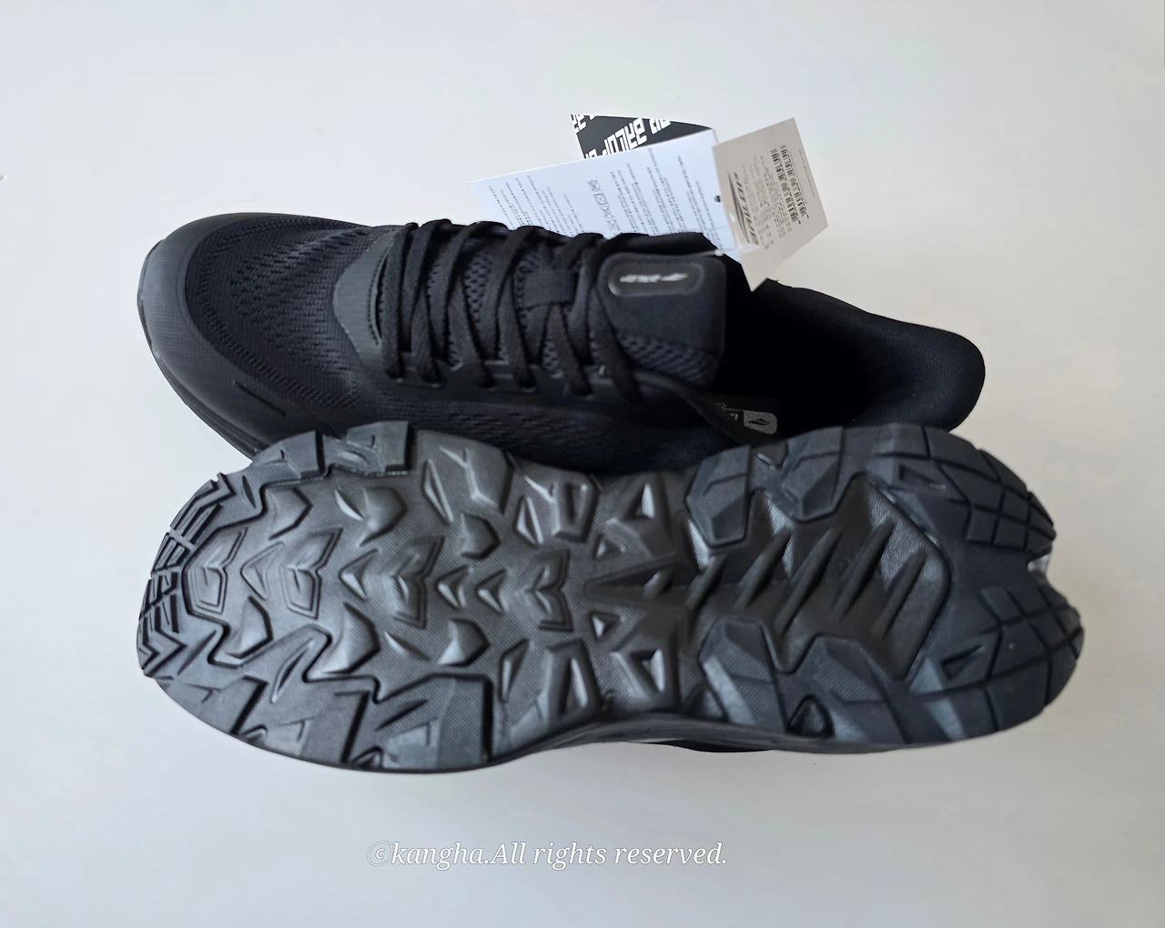 나는 구두는 260mm를 신지만, 등산화 트래킹화 운동화 등 야외활동용 신발은 대부분 265mm가 많아 이번에도 265mm를 신청했는데 볼과 길이 모두 편안하게 잘 맞는다. 사이즈 선택은 평소 각자가 선호하는 운동화 치수를 선택하면 무난할 듯싶다.