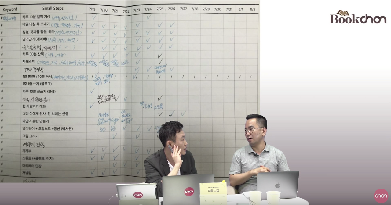 습관 만들기의 그런 수많은 책들 중 하나일 거란 생각은 버려도 된다. 군더더기는 쫙 빼고, 작가 스스로 실천을 통해 만들어낸 이야기를 담았다. 웨비나를 진행하면서 이렇게 합이 잘 맞는 사람이 있어나 싶을 만큼 함께 나눈 수다가 흥겨웠다. 이제 좀 이야기를 풀어볼까 한다.