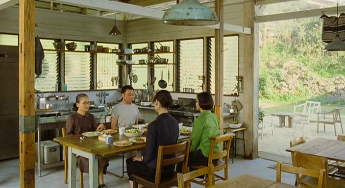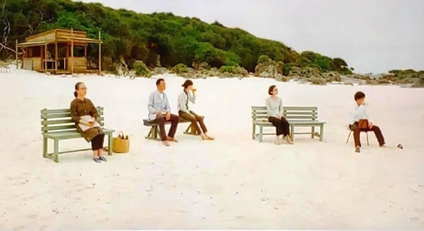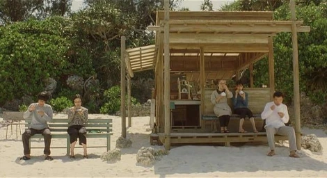 돌아온 타에코는 이 펜션의 일과가 지극히 단순하다는 것을 그제야 깨닫죠. 이곳에서 할 수 있는 것이라고는 세 끼 식사를 함께 하는 것을 제외하면 아침에 바닷가에서 몇몇 사람들과 체조하는 것, 낮에는 사람들과 바닷가 벤치에서 맥주를 들고 바다를 볼 수 있다는 것이에요. 팥빙수를 사 먹을 수 있는데 살 때는 돈이 아닌, 자신이 가진 물건 중 어떤 물건이든 주면 돼요. 어떤 아이는 색종이 접은 것으로 팥빙수를 사 먹어요.