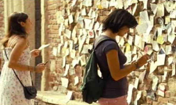 네. 그리고 영화에서는 또 하나의 장치가 등장하는데요. 실제로는 그곳 벽면에 무언가를 붙일 수 없으나, 영화에서는 줄리엣의 발코니 벽면에 여러 나라 여성들이 비밀스러운 사랑을 고백하려고, 편지를 붙여두었다고 설정되었어요.