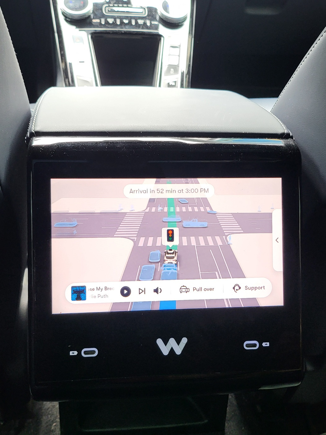 이걸 내가 그렇게 타고 싶어 했던 것도 아닌데 막상 타게 되니 '드디어 타 보는구나' 하는 설렘이 있었다. 새로운 경험은 두려움과 함께 설렘이 같이 온다. 문을 여니 웰컴 00 하면서 로봇성 목소리로 우리를 반겨준다. 나는 습관적으로 '헬로'를 하려고 하다가 '헬'이 나오고 '로'가 나올 순간 그 말을 할 필요가 없음을 깨달았다. 반드시 좌석벨트를 해야 차가 떠난다고 해서 서둘러 자리에 앉아 안전벨트를 하였다. 차의 내부에는 뒷자리에 손님들이 조절할 수 있게끔 패널이 있어, 온도나 음악들을 선택할 수 있게 되어 있다. 음악 playlist에 K-pop이 있는 것도 반가웠다.