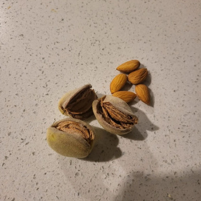 우리는 첫날 운전하면서 처음 보는 나무라 궁금했지만 서울에서 샌프란 시스코 그리고 머세드까지 오느라 피곤하여 그 호기심을 채울 여력이 없었다. 다음 날 새벽, 깨자마자 동네 한 바뀌 돌면서 나무 밑에 떨어진 열매를 보고 이 나무의 정체를 알았다. 아몬드였다. 생각지도 못 한 존재를 만났다. 비로소 아 내가 낯선 곳에 왔구나 하는 것이 실감이 났다.