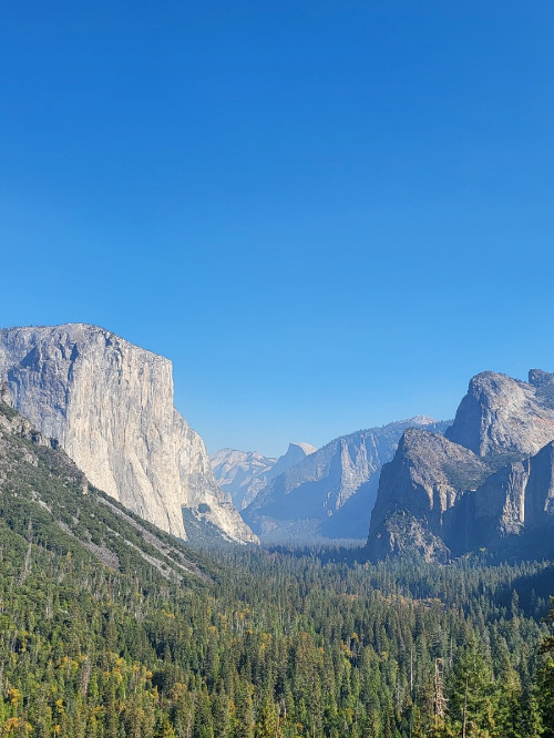 먼저 Glacier 포인트, 해발 2000미터가 넘는 곳이다. 가는 도중에 터널뷰라는 포인트에서 요세미티 벨리의 전체 모습을 볼 수 있다. 요세미티를 소개하는 사진에 많이 나오는 뷰이다. 왼쪽에 요세미티의 시그니처인 앨캐피탄 , 오른쪽 저 멀리에 또 다른 시그니처 하프돔이 보인다.