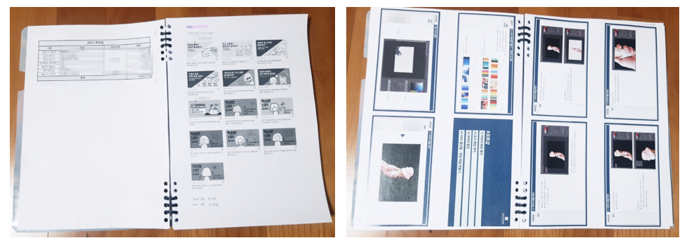 공부를 시작하려면 펜부터 사곤 했던 사람이 나다. 결산을 하는 때에도 왠지 모르게 다이어리가 필요하다고 느꼈다. 여러 자료들을 출력해서 하나로 만들고자 했기 때문에 간략하게 바인더를 만들어 보았다. 커버는 마땅치 않아서 아래와 같이 좋아하는 영화의 파일을 분해해서(?) 구멍을 뚫어 만들었다.