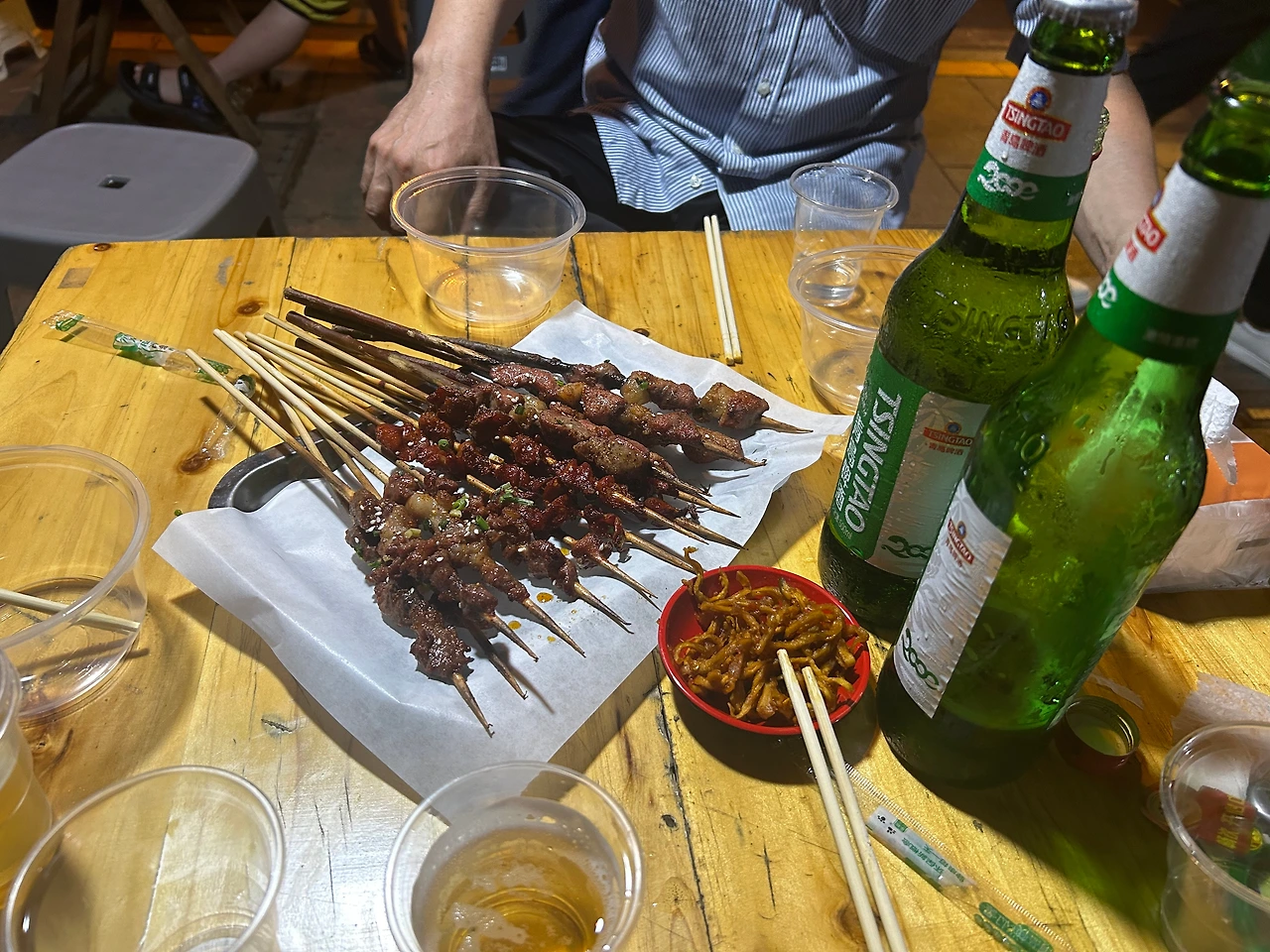 패키지 일정이 모두 끝나고 숙소로 돌아오면, 피곤하긴 했지만 현지의 감성을 즐기기 위해서 가족끼리 호텔 앞에 나와서 길거리 포차에서 꼬치구이와 함께 맥주를 마시곤 했다. 한국 관광객이 많은만큼 포차 상인들도 어느정도 간단한 한국어는 되었다. 다행히 동생이 중국어를 배운적이 있어서 중국어를 몇마디 쓰니 정말 좋아하시면서 서비스까지 주시더라. 흔히 위생상의 문제로 현지음식을 함부로 먹지 말라고 하지만 우리는 특별히 탈은 나지 않았다.