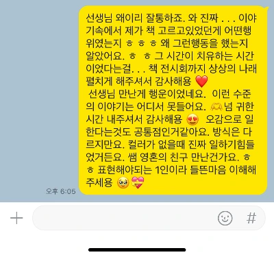 내가 치유하는 글쓰기 방법이 가장 쉬워서 선택한 일이었는데 선생님은 그 일 또한 크게 평가해 주셨다.
