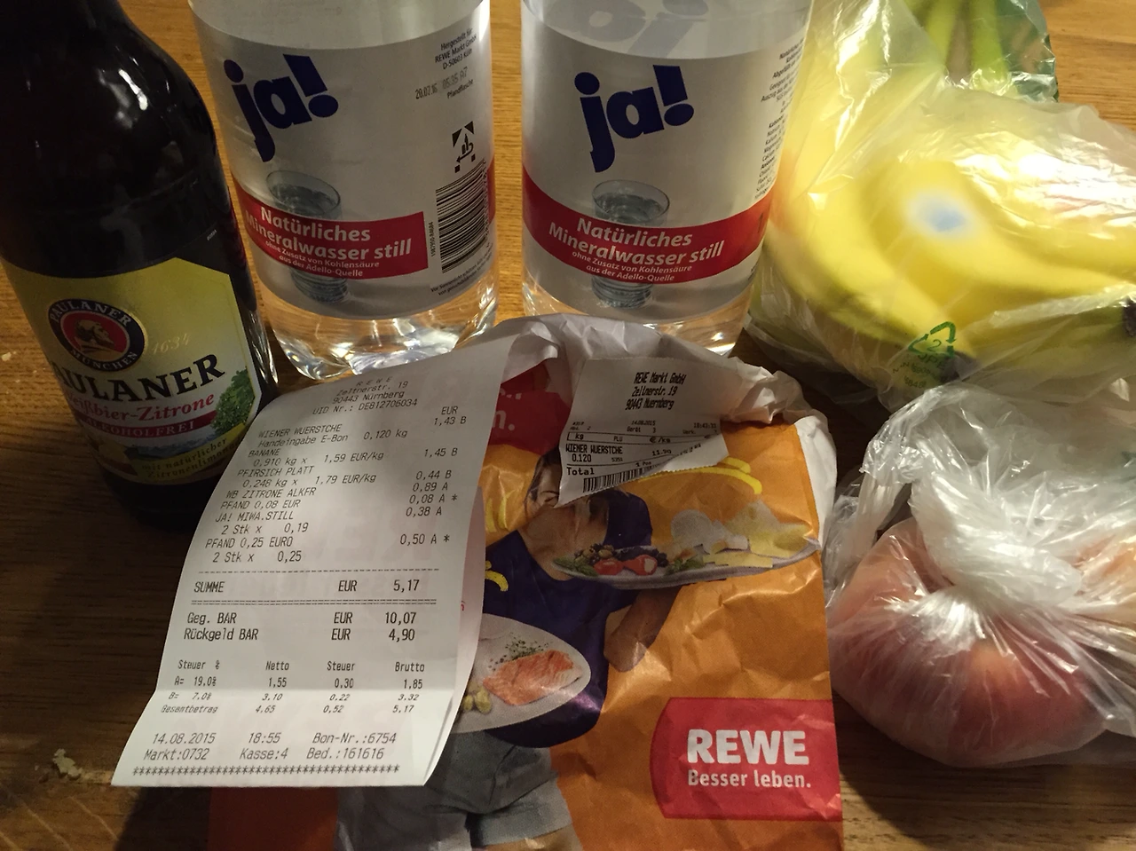 3. 독일하면 빼놓을 수 없는 것이 바로 맥주와 소시지! 사실 맥주와 소시지에 대해서는 할 말이 많지만 그건 다음 기회로 미루고. 두달 반 동안 독일 전역을 돌아다니는 여행을 계획하면서 다짐한 것이 한 가지 있다면 '한국에서도 마실 수 있는 맥주'는 절대 사먹지 않기로 한 것이다. 난 맥주를 좋아하지만 참으로 안타깝게도 술은 약한 편이다. 생맥도 마시고 마트에서 파는 캔맥도 병맥도 종류별로 매일 마셨다가는 배가 나오는 것은 둘째치고 항상 취한 상태일 것이기 때문에 여행 자체가 불가능해진다. 그러니까 가능하면 생맥주 위주로 마시자! 다행인 것은 아무리 작은 도시라 하더라도 시내 곳곳에 양조장이 딸린 백년이 훌쩍 넘은 술집들에서 한국에서와는 비교도 안 되게 저렴한 가격으로 생맥주 한잔씩을 마실 수 있었다는 점이다. 그런 집에서 알코올 프리 맥주를 찾았다가는 아마 불호령이 떨어졌겠지. 마트애서는 알코올 프리 맥주를 판다고 했는데 그렇게 집요하게 매일 마트를 뒤지고 다녀도 도통 찾을 수가 없었다. 그렇게 찾아 헤맸던 알코올 프리 맥주가! 뉘른베르크의 REWE에! 냉장고에서 시원하게! 나를 기다리고 있었다 하하하! 파울라너야 우리나라에서도 쉬이 구할 수 있는 맥주긴 하지만 살짝 레몬향이 가미된 라들러에 무알코올이니 안 마셔볼 수야 없지!