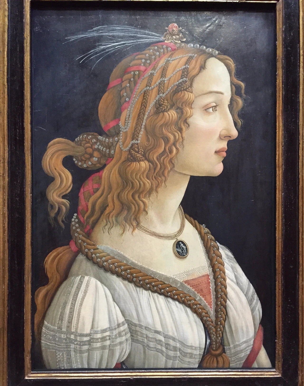 슈테델에서 만난 보티첼리의 그림 한 점으로 피렌체에서의 행복한 기억이 떠올랐다. 다시 슈테델로 돌아와 그림 속 여인을 자세히 관찰한다. 그림의 제목은 ‘이상적인 여인상’(Weibliches Idealbildnis/ Idealized portrait of a Lady, 1480)이다. 그리고 괄호 안에 원제보다 더 긴 추측성 제목(?)이 달려있다. ‘님프로 표현된 시모네타 베스푸치의 초상화’(Portrait of Simonetta Vespucci as a Nymph)란다. 시모네타 베스푸치가 누군인가. 그 당시 피렌체에서 가장 아름다운 여인으로 추앙받던 사람이 아닌가. 그녀는 이탈리아 북부 제노바에서 귀족의 딸로 태어나 열다섯 되던 해에 피렌체의 베스푸치 가문으로 시집을 왔다. 하지만 미인박명이라고 스물 두 살의 어린 나이에 세상을 떠났다. 가장 아름다운 모습만을 남기고 떠난 그녀는 많은 예술가들에게 영감을 주었다. 보티첼리에게도 마찬가지여서 ‘봄’과 ‘비너스의 탄생’을 비롯한 많은 작품에서 그녀의 모습을 찾을 수 있다. 평생 독신으로 살았던 보티첼리에게 그녀야말로 ‘나만의 비너스’였을 것이다. 보티첼리의 그림을 통해 시대를 뛰어넘어 미의 대명사가 되어버린 시모네타 베스푸치. 자신을 후원해주는 가문의 새댁을 바라볼 수밖에 없었던 보티첼리였지만 결국엔 본인의 재능을 통해 그녀에게 영원한 생명을 불어넣은 셈이 된 것인지도 모르겠다.