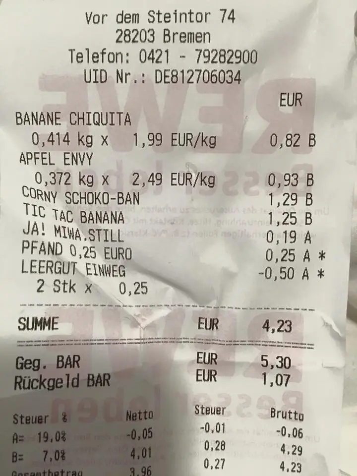 여행 첫날, 프랑크푸르트 공항에서 노숙할때 다른건 몰라도 물은 사야겠기에 눈물을 머금고 에비앙 1리터 들이를 4.05유로에 구매했다. 근데 내가 계산대에서 본 가격은 3유로대였는데? 응? 어떻게 된거지?