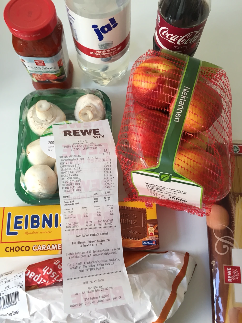 4. 중앙역 바로 앞의 rewe는 너무 작고 부랑자들이 너무 많이 드나든다. 마인강 건너편 주택가에 있는. rewe 좋음. 오늘도 가야지.