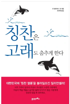 제목에서 알 수 있듯이 책은 칭찬의 중요성을 강조한다. 몸무게 3t이 넘는 범고래가 관중들 앞에서 멋진 쇼를 할 수 있는 건 조련사의 칭찬과 긍정적 태도에서 기인한다는 것이다.