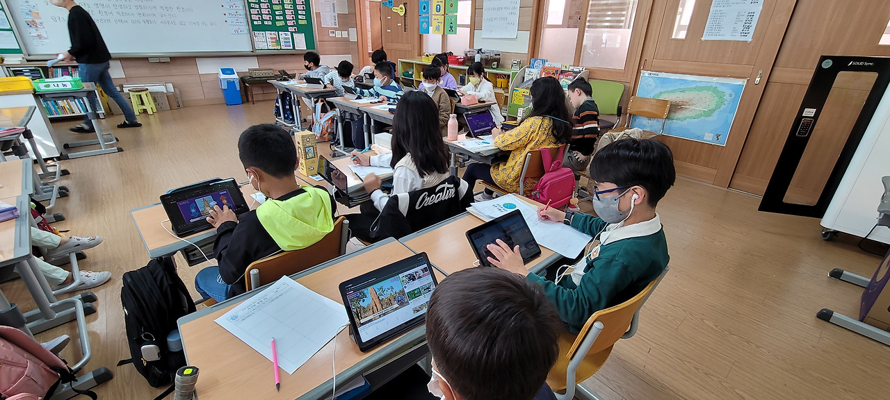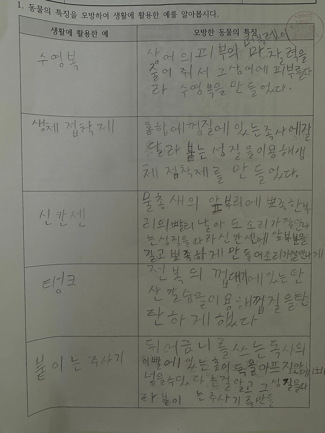 사람들이 동물들의 특징을 모방해 생활 속에 활용하는 생체 모방 기술이 있는데 이에 대해서 태블릿 PC를 활용해서 알아보았습니다.