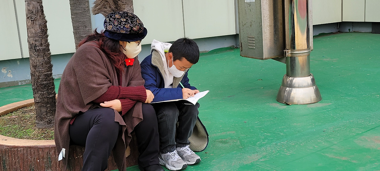 오늘은 특별히 밖에 나가서 직접 관찰하여 시 상을 떠올리고 글을 써 보았습니다.