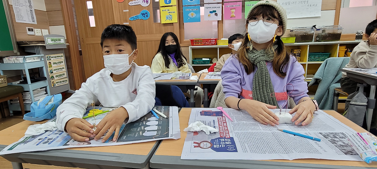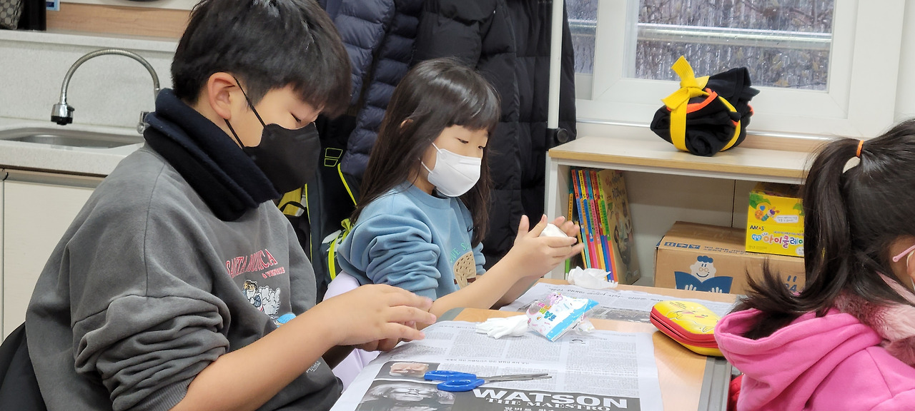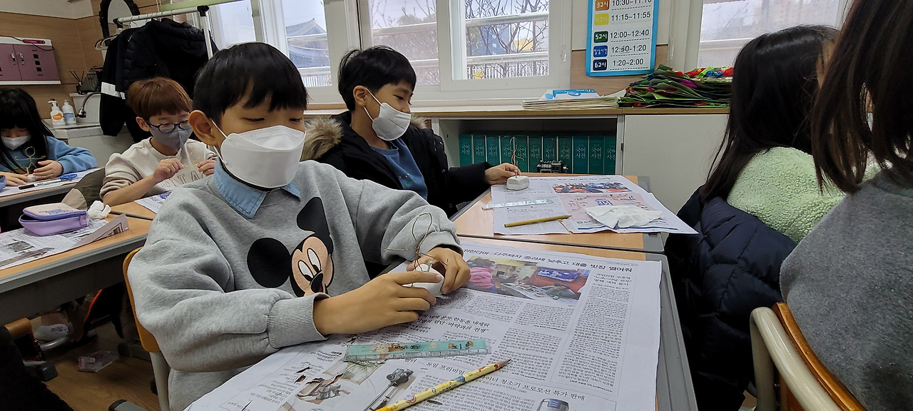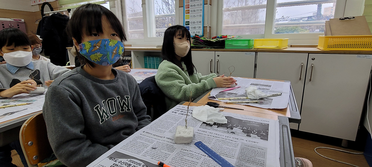 그리고 21일 오늘은 조형물을 만들기 위해 먼저 뼈대 작업을 했습니다. 철사를 이용해서 뼈대를 만드는 것인데, 어려운 작업임에도 아이들이 잘 해냈습니다.
