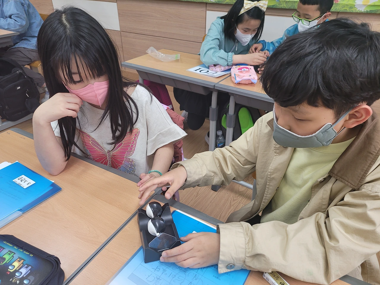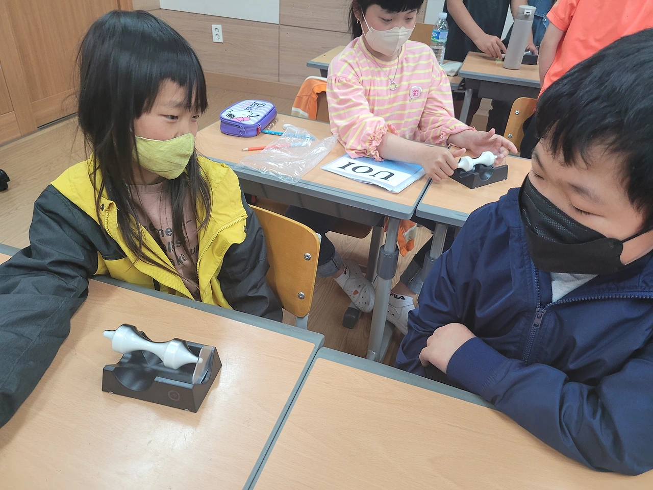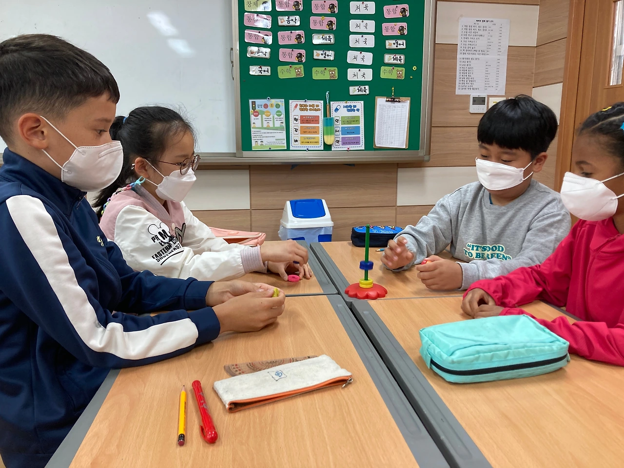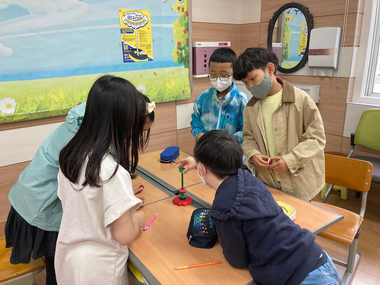 그리고 남은 시간에는 자기력을 이용한 자석 팽이 놀이를 하면 수업을 마무리했습니다.
