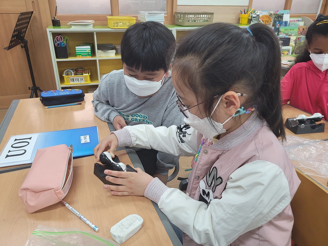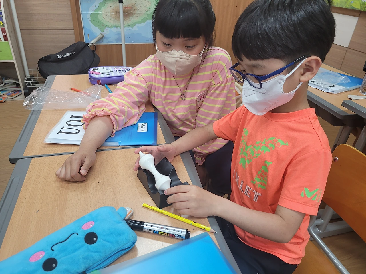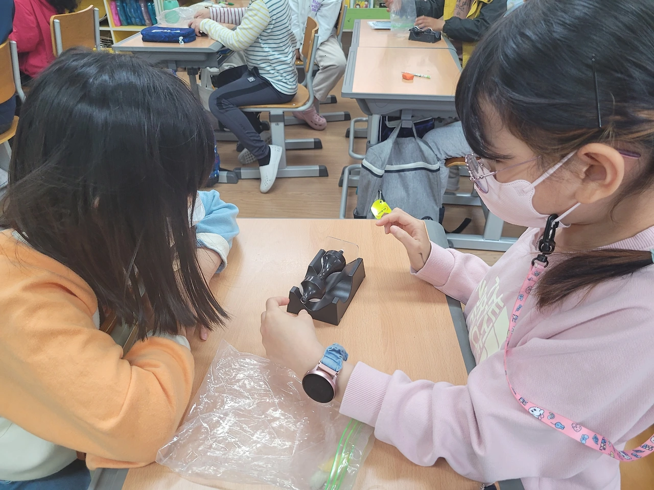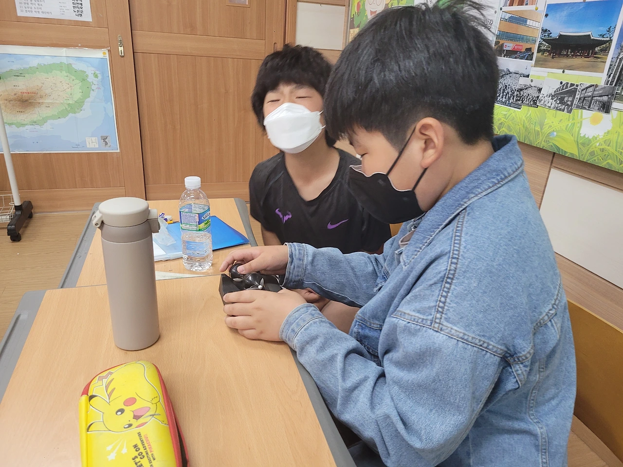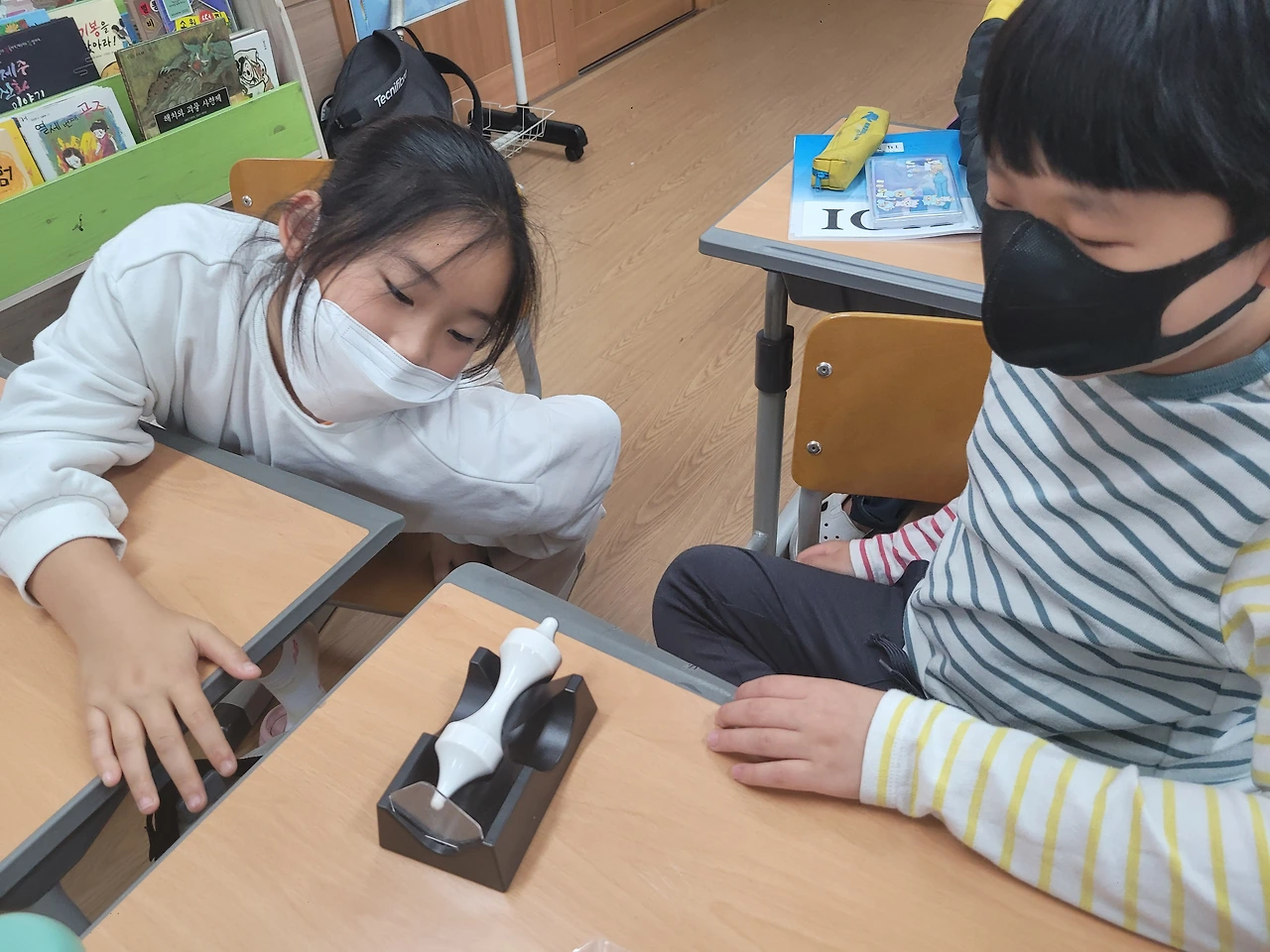 그리고 남은 시간에는 자기력을 이용한 자석 팽이 놀이를 하면 수업을 마무리했습니다.