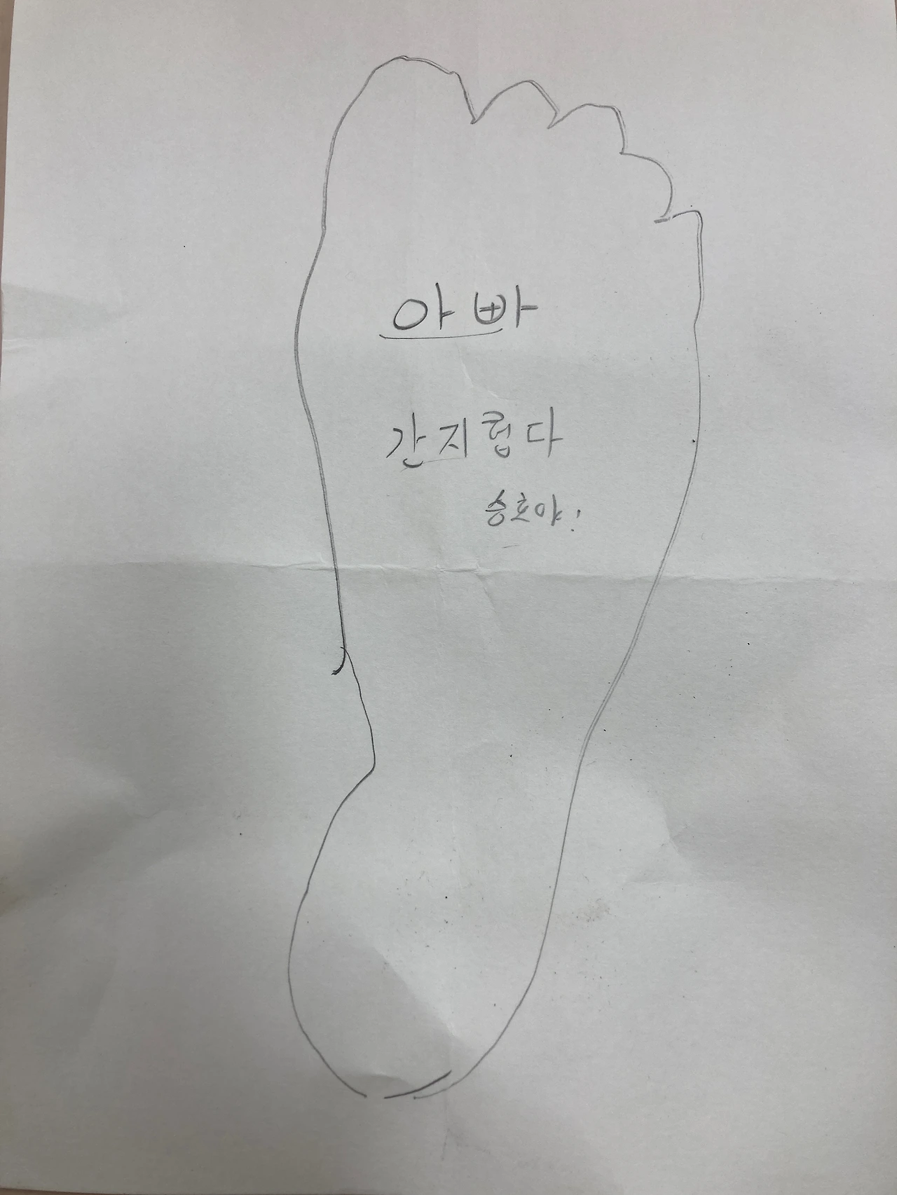 그리고 아이들에게 가족 발 그리기 숙제를 내줬습니다. 월요일 아침 1교시 서클 시간에 우리 가족 발 소개하는 시간을 갖으려고 합니다.