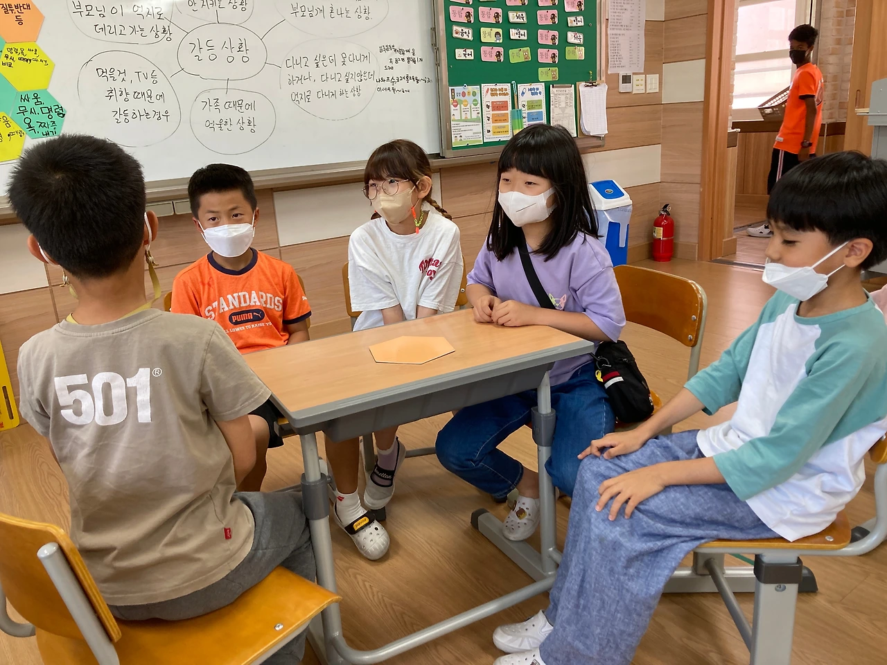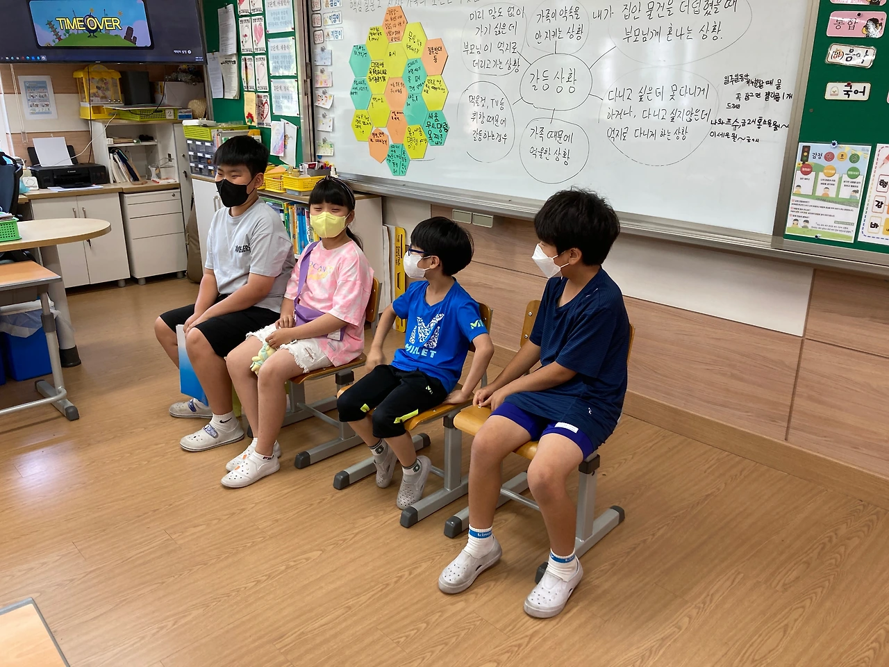 아이들이 직접 가족 간의 갈등 상황을 역할극으로 꾸며서 연출해 보았습니다. 그러고 나서 어떻게 하면 그런 갈등 상황을 해결할 수 있는지 찾아보았습니다.