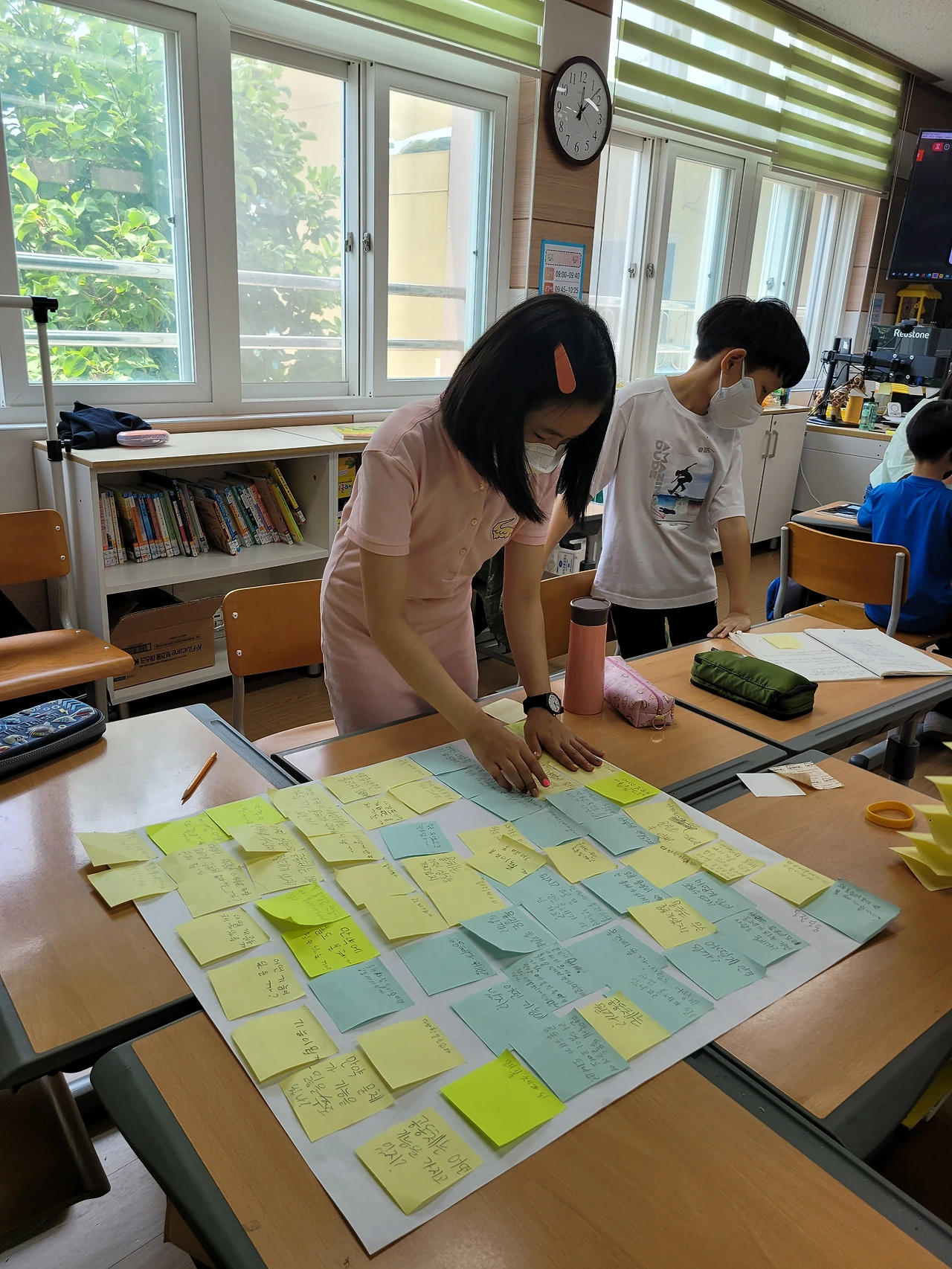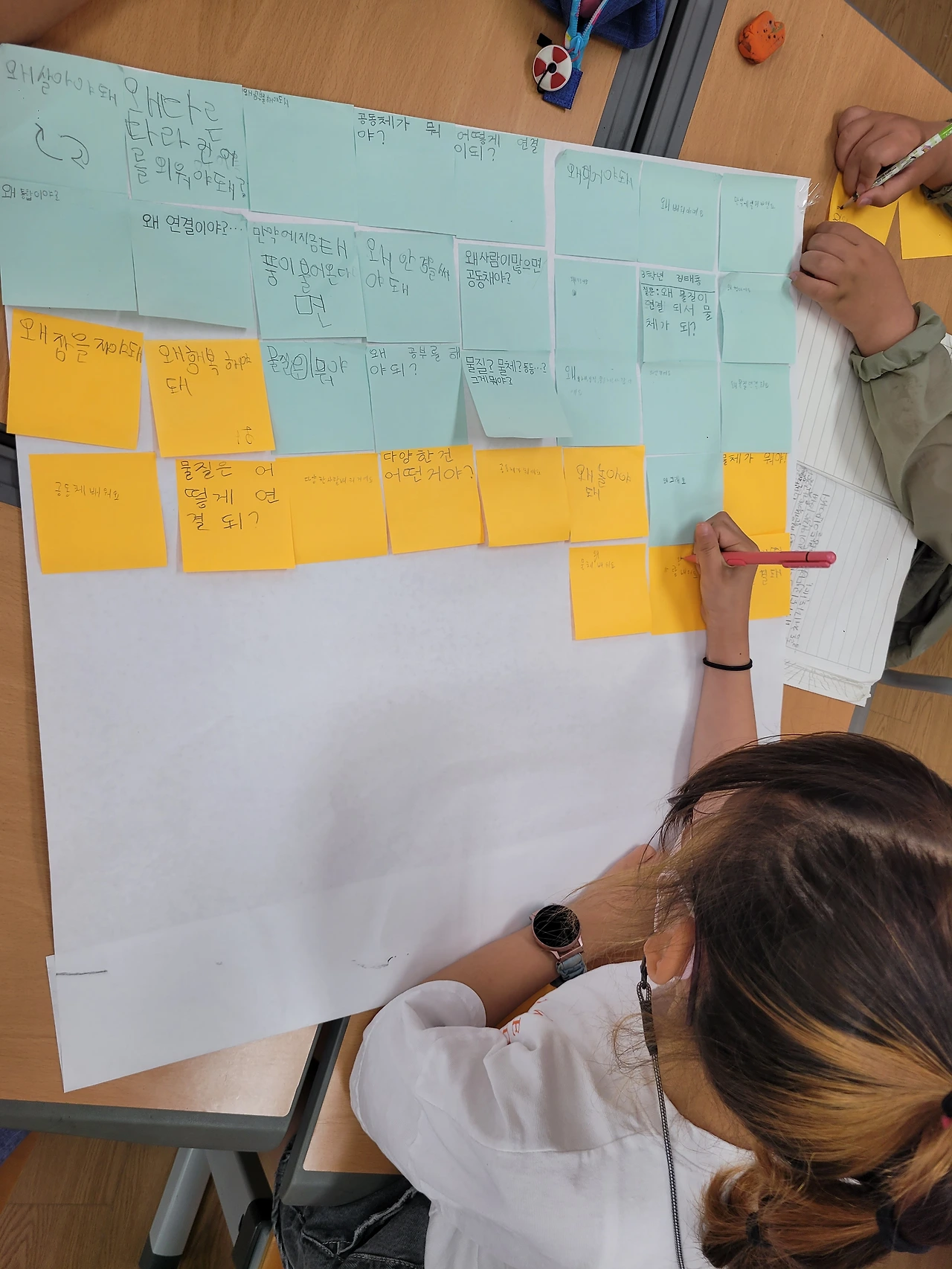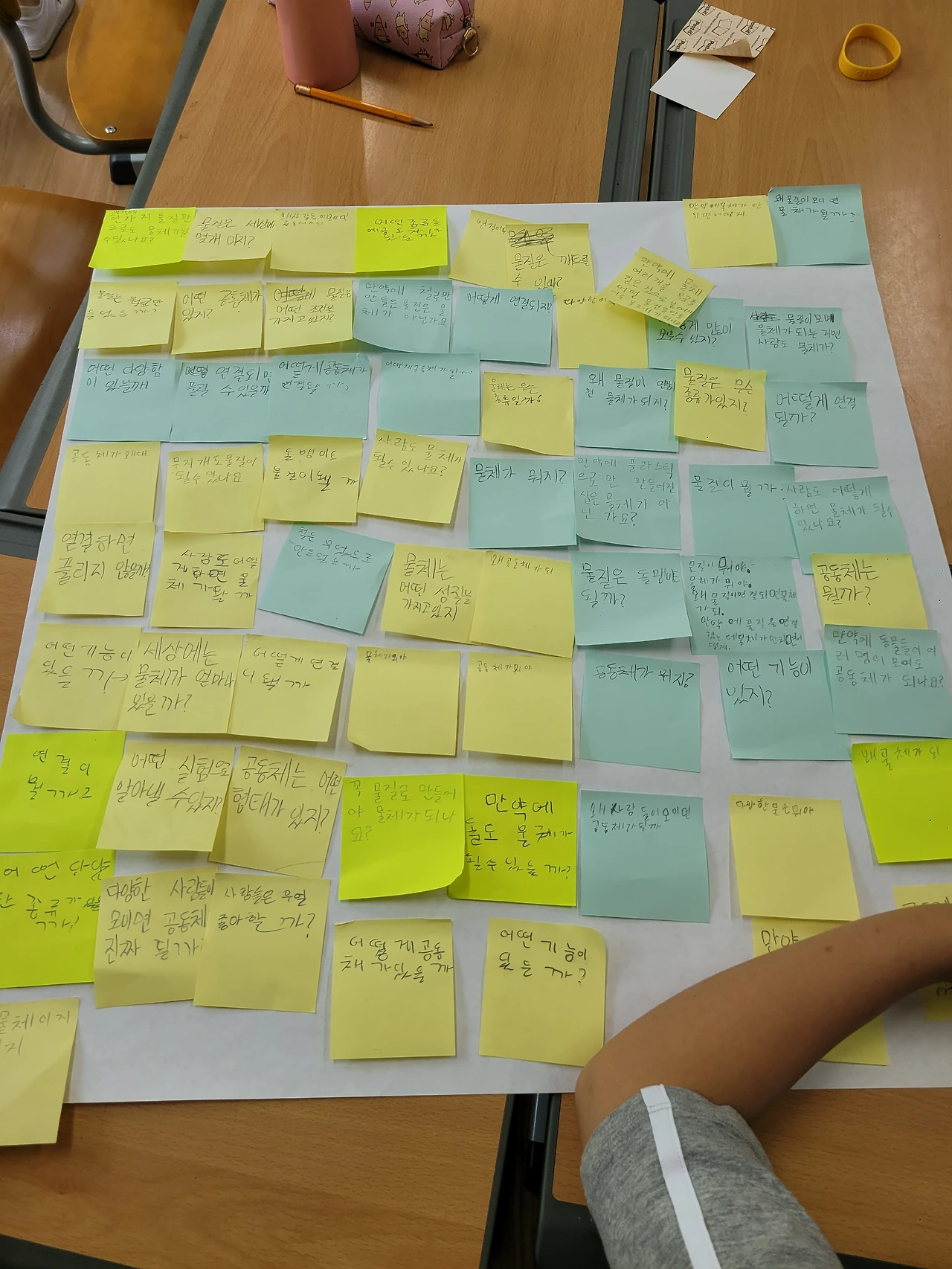 그래서 각 모둠별로 뽑아낸 핵심 질문을 모아서, 우리 반의 핵심 질문을 만듭니다