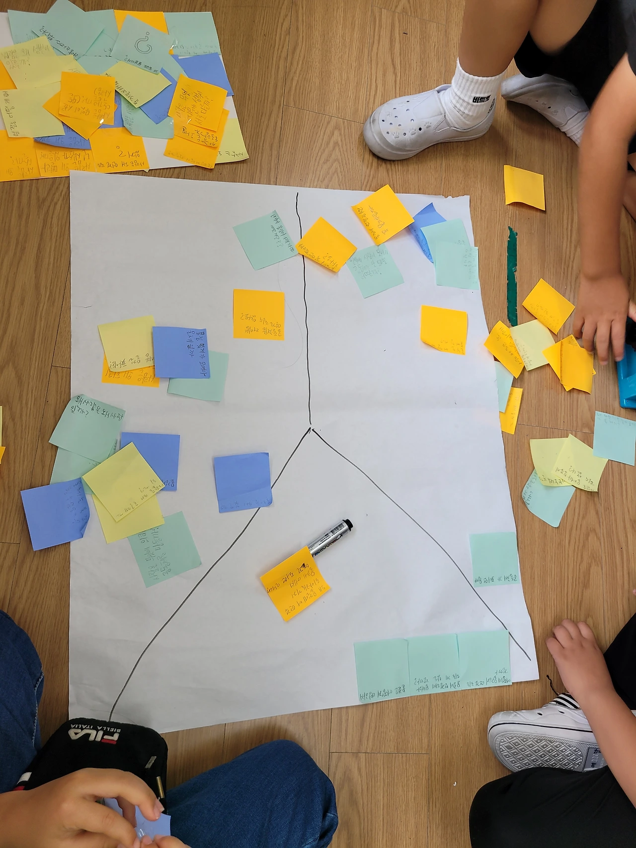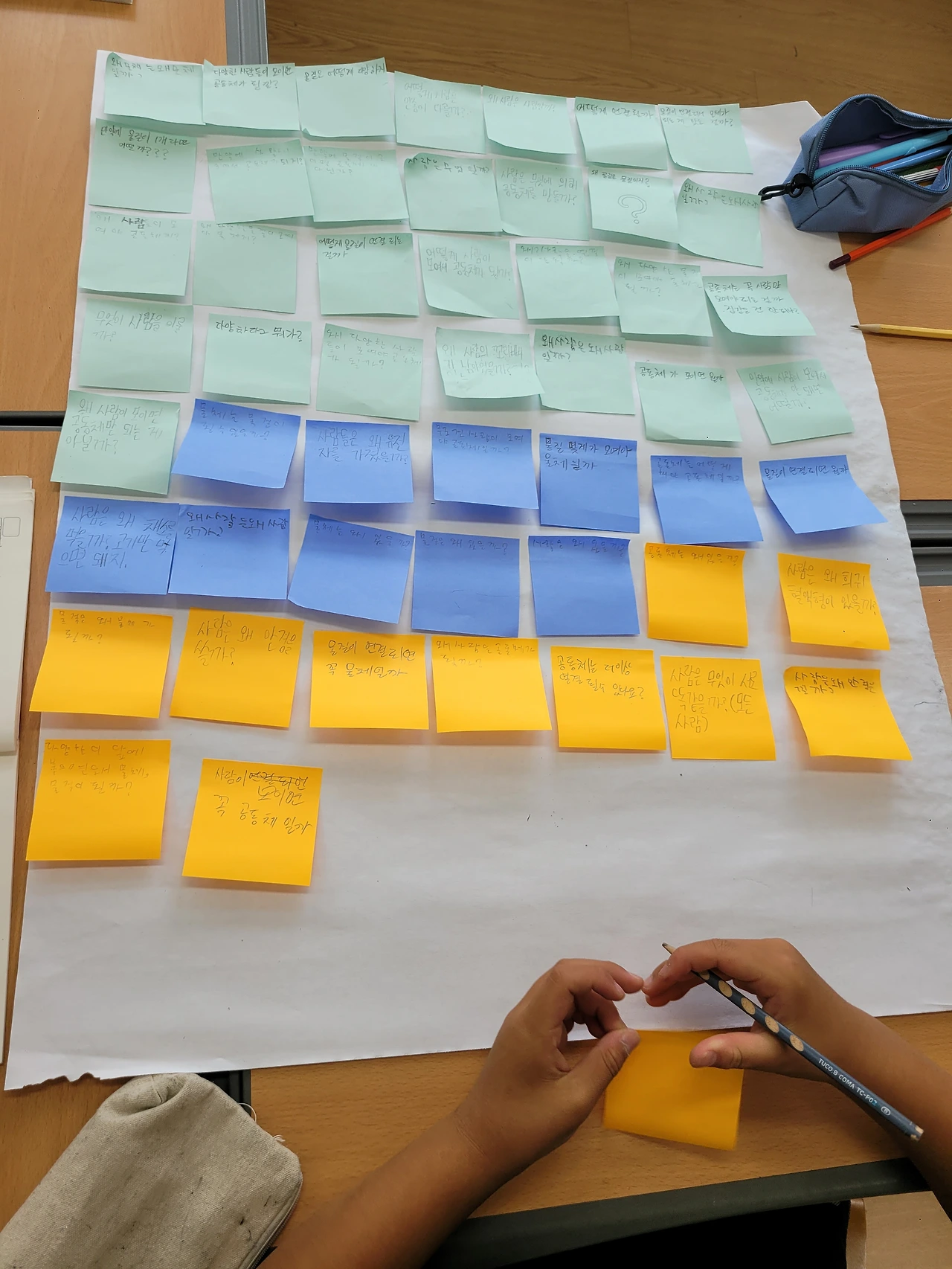 전지를 가득 채운 질문들 이제 이 질문을 분류하는 작업에 들어갑니다.