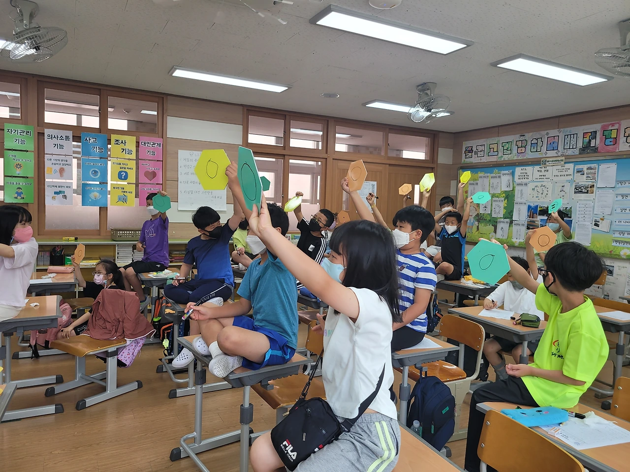 모둠별 활동을 마치고 나서, 아이들과 함께 분류한 내용을 학습지에 확인하고 정리합니다. 교과서에는 훨씬 얄팍하게 내용이 제시되기 때문에 따로 학습지를 구성할 수밖에 없습니다.