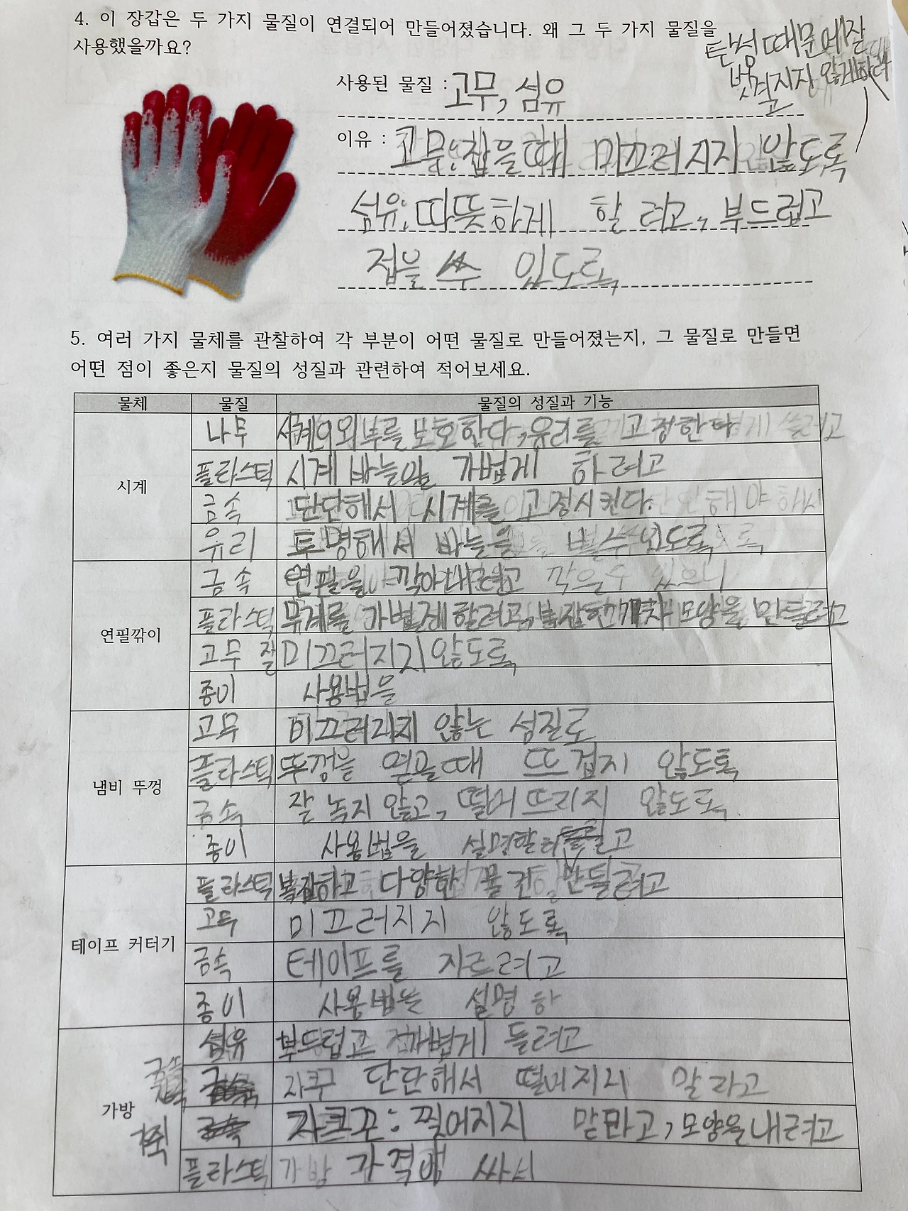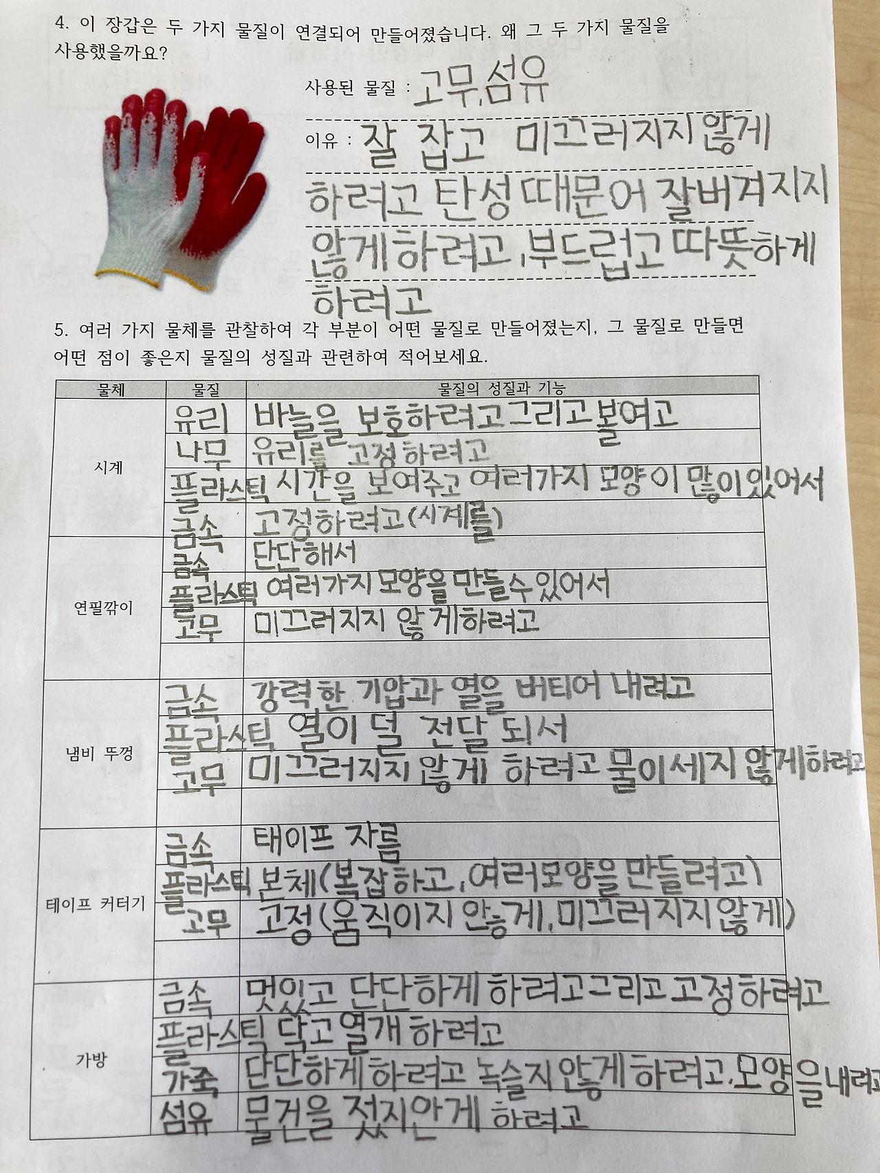 4. 여러 가지 물질이 연결되어서 만들어진 물체의 기능과 물질의 성질 연결하기