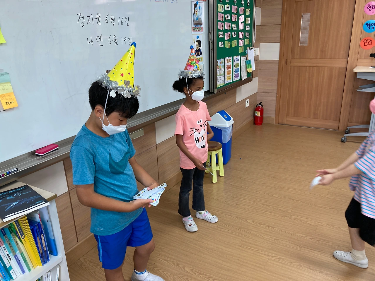 오늘 1교시는 6월 생일을 맞은 친구들을 축하하는 시간을 가졌습니다. 아이들이 자기 생일만 기다리네요~