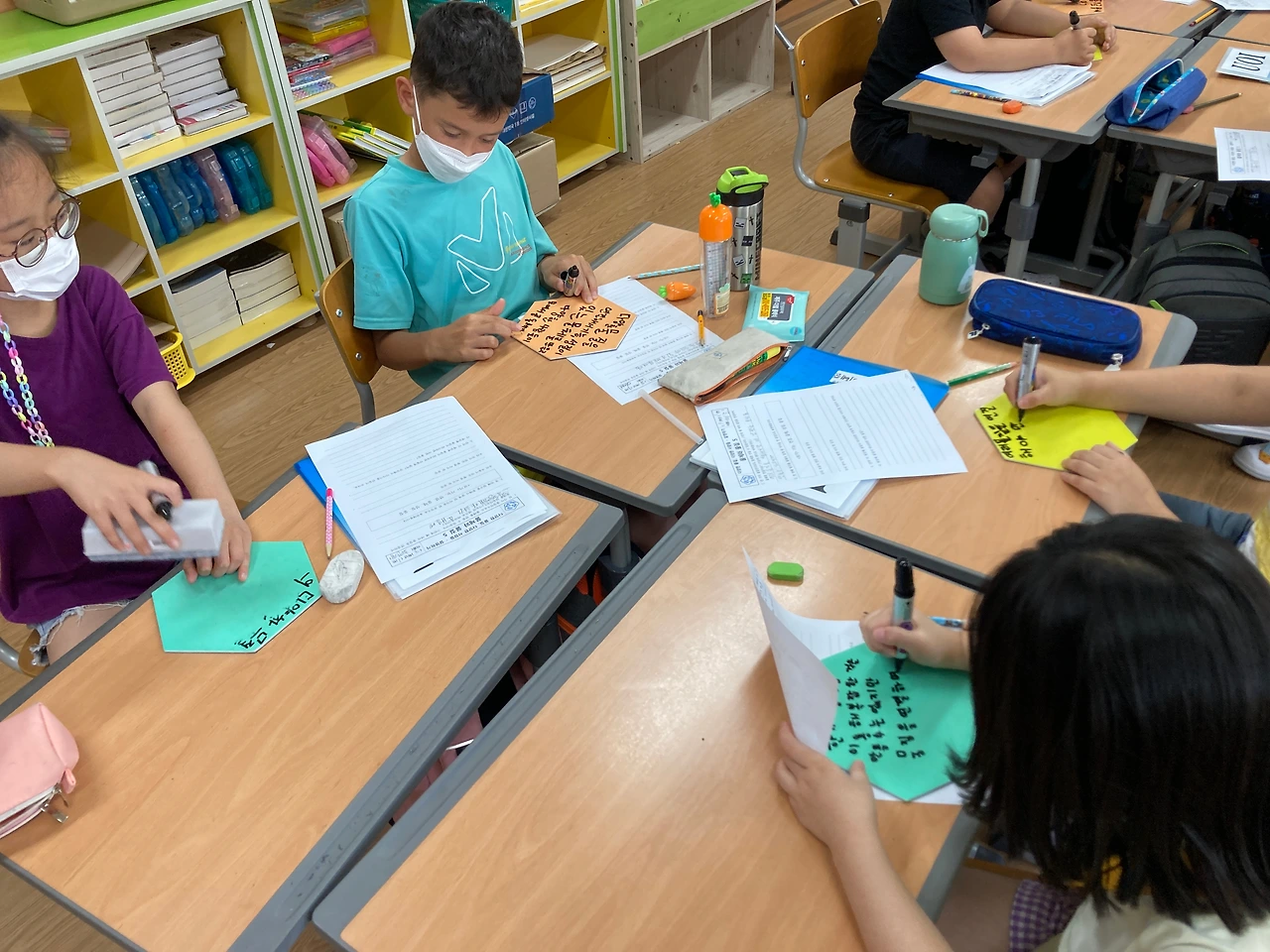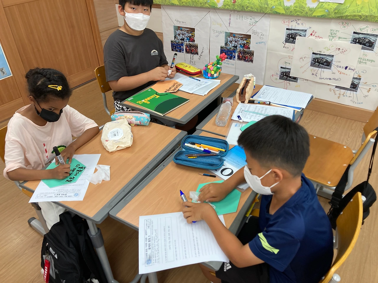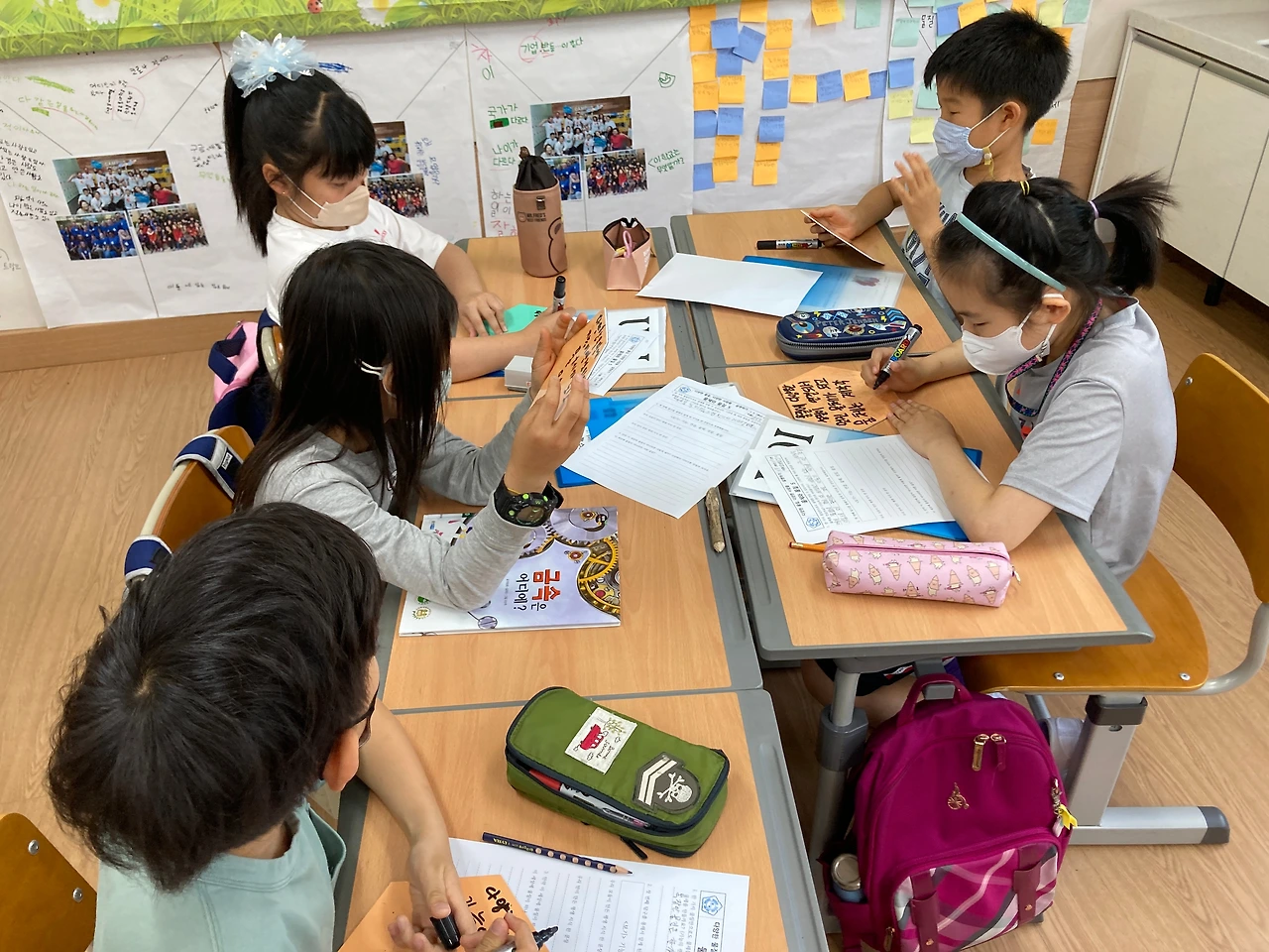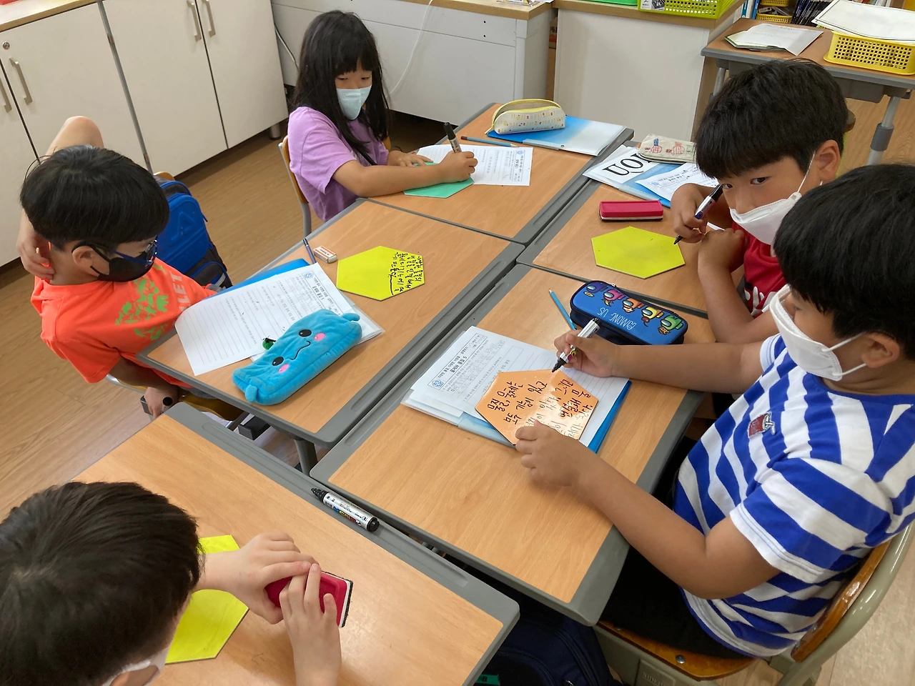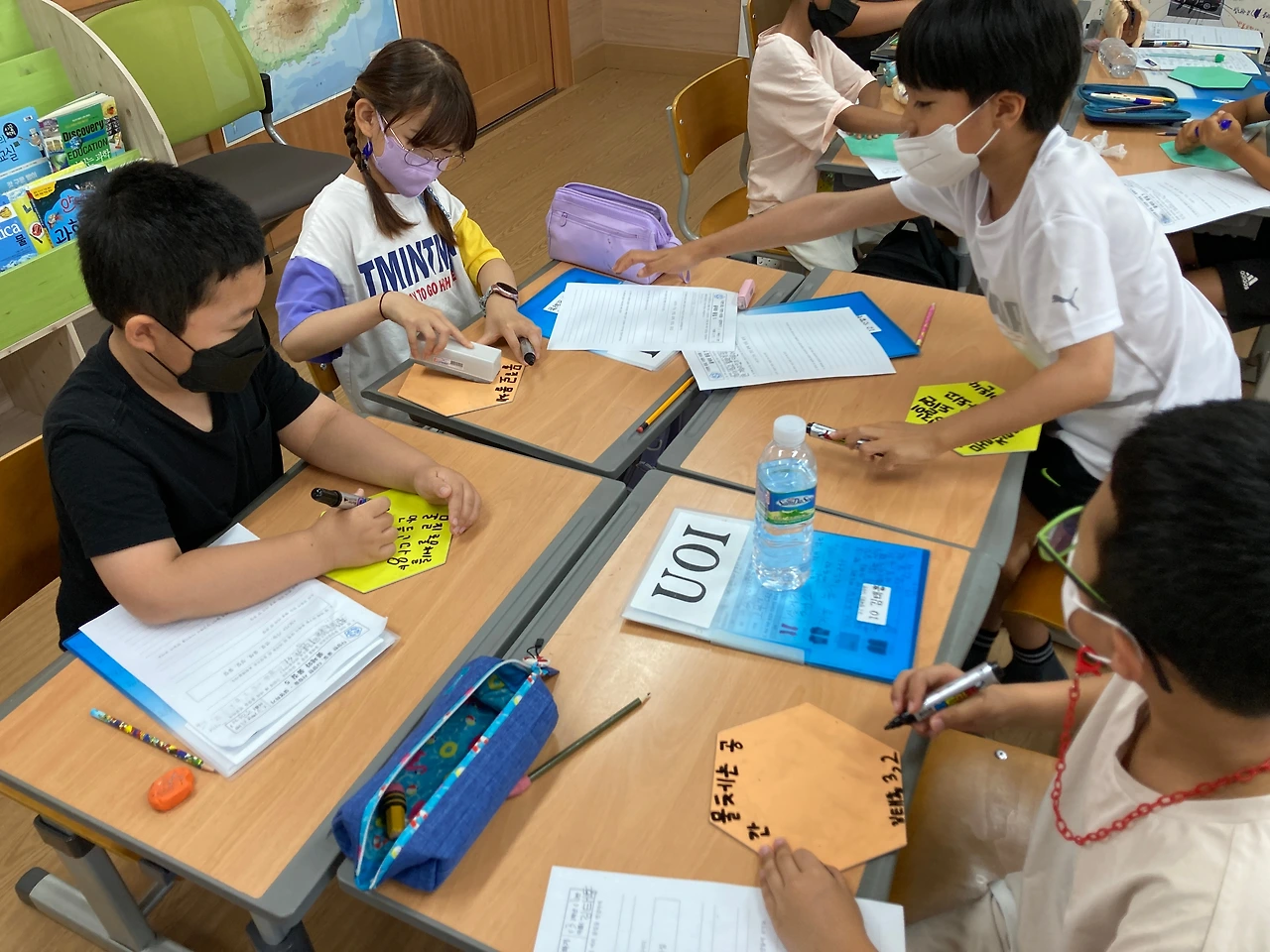 이번에도 아이들은 각자 문장을 만들고, 다시 모둠끼리 문장을 만들고, 최종적으로 반 전체적으로 같이 문장을 만들어 봤습니다.