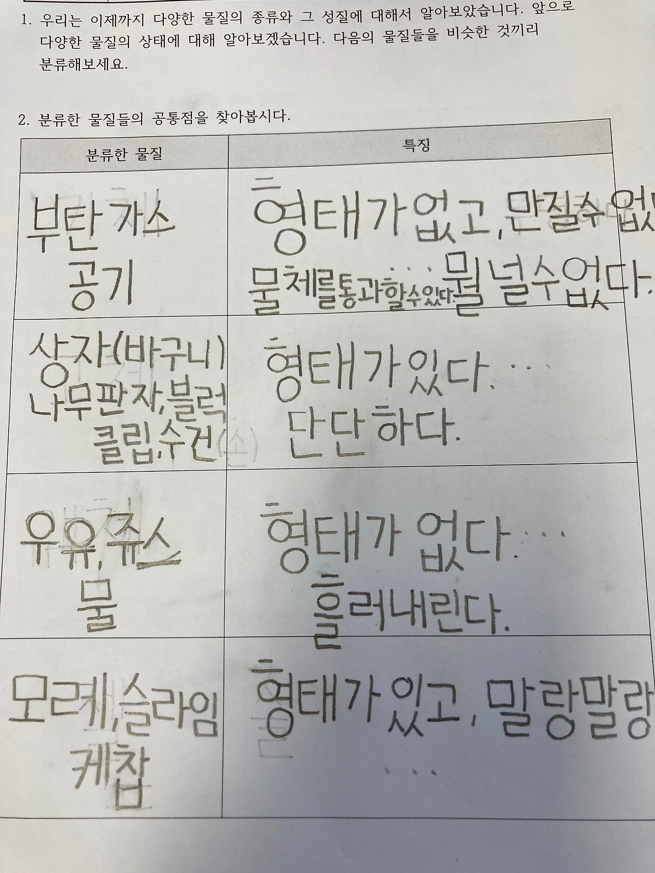이제 까지 아이들은 물질의 종류의 다양함, 물질의 성질의 다양함에 대해서 알아보았습니다.
