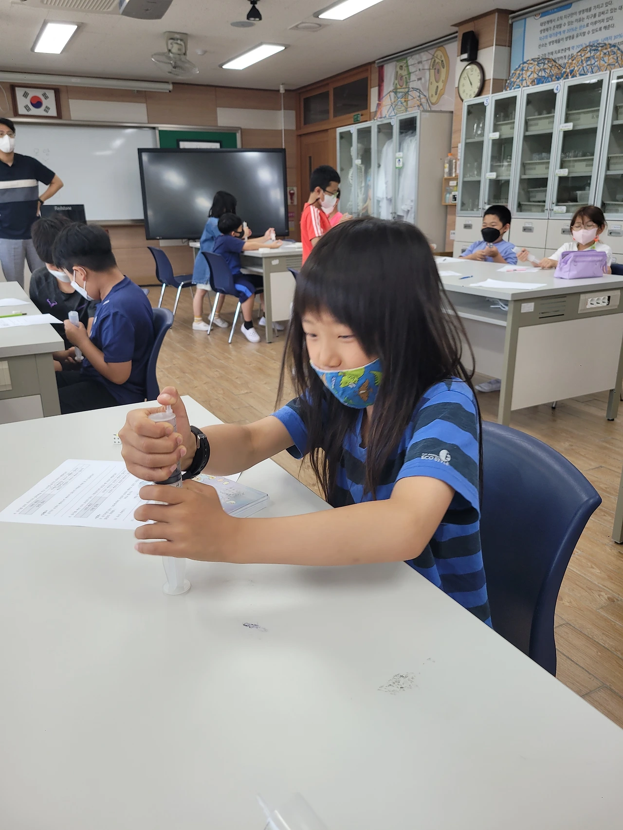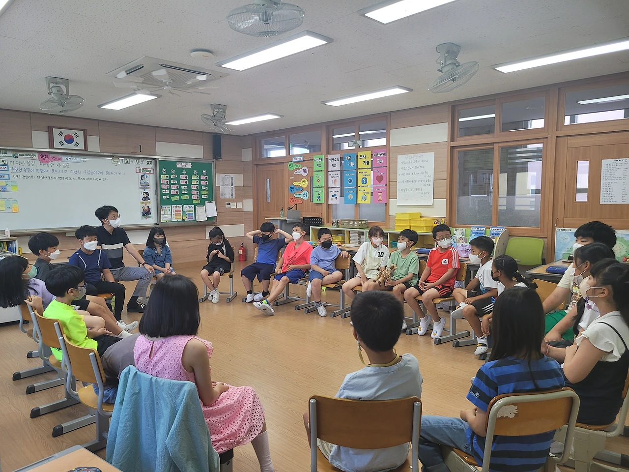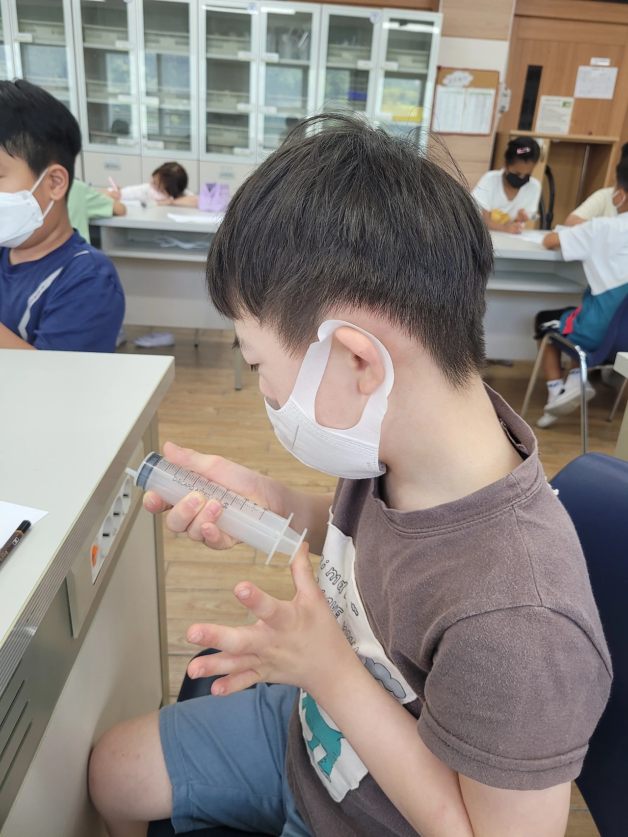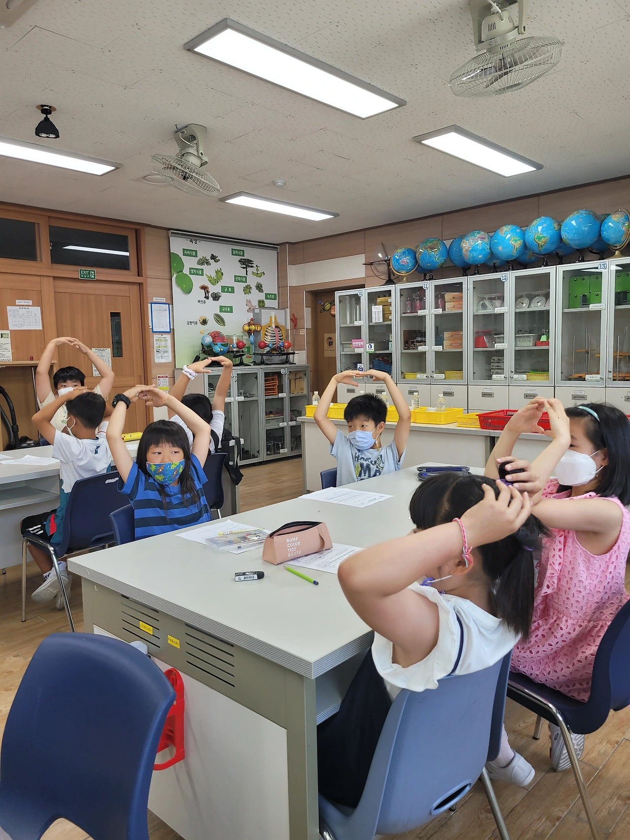2~3교시는 아이들과 함께 "공기"에 대해서 알아 보았습니다. 빈컵에 공기가 들어있다는 사실을 어떻게 증명할까? 어떻게 동생들에게 이해 시킬까? 아이들이 기가막힌 아이디어를 제시해 줬고, 아이들이 제시한 아이디어로 실험을 설계해서 진행해 보았습니다.