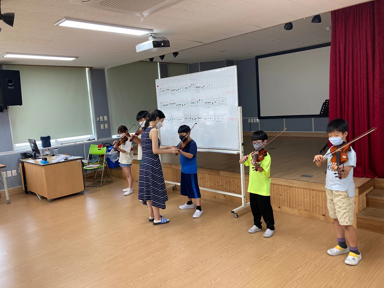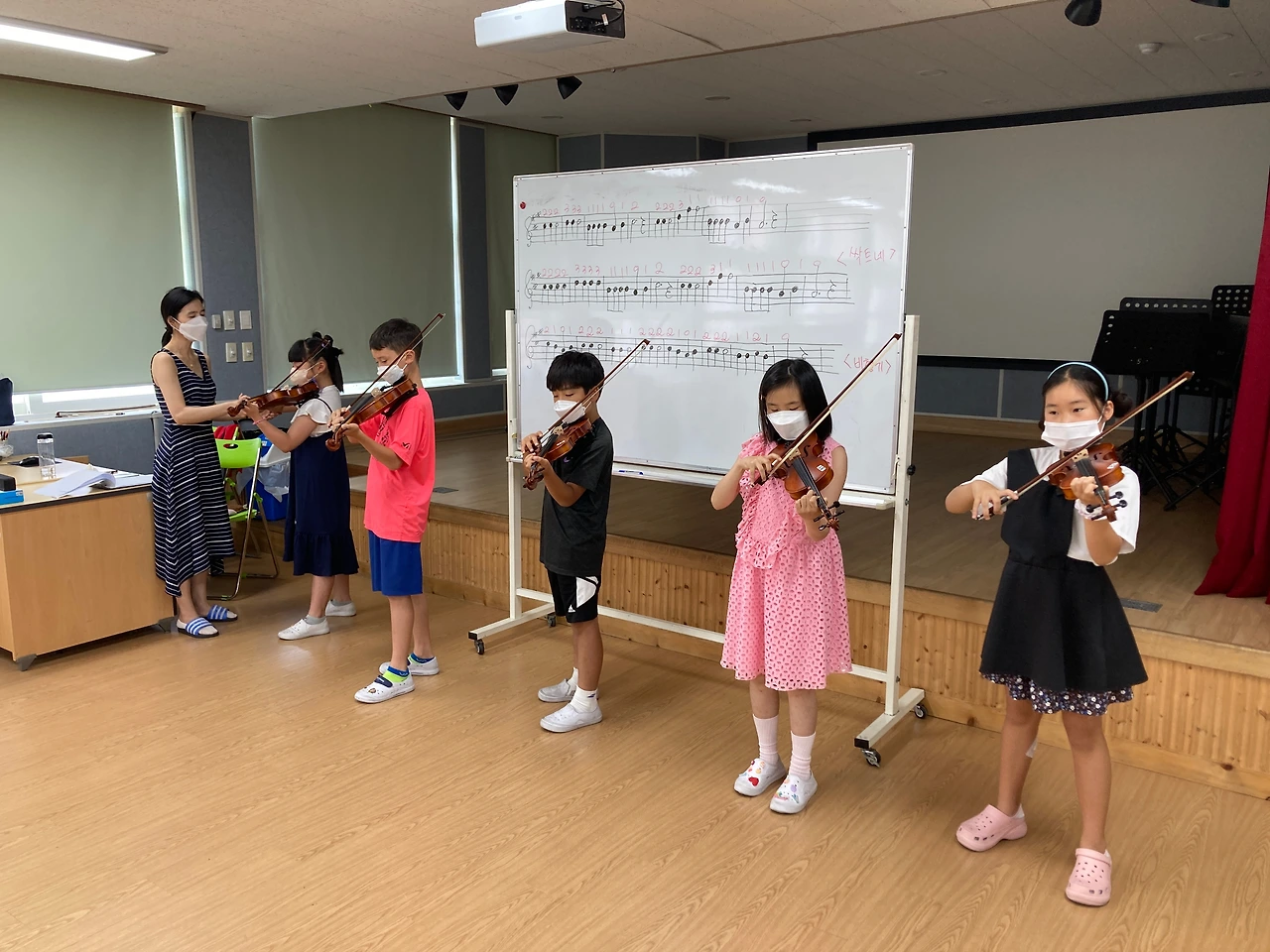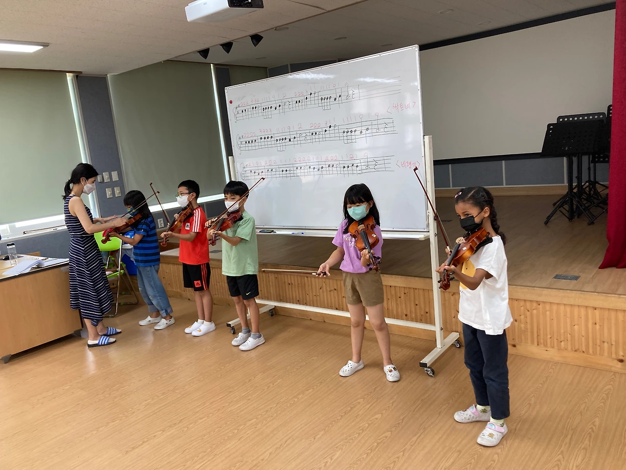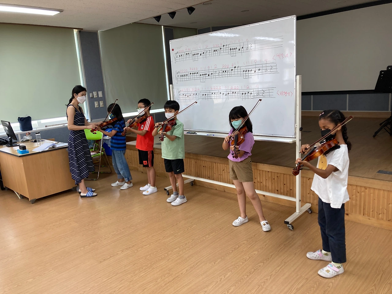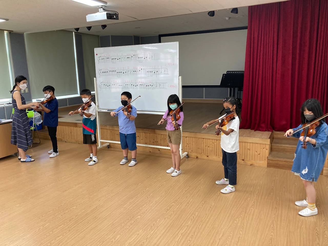 오늘은 1학기 바이올린 수업 마지막 시간이었습니다. 앞에나와 연주하는 아이들의 모습이 대견하네요~